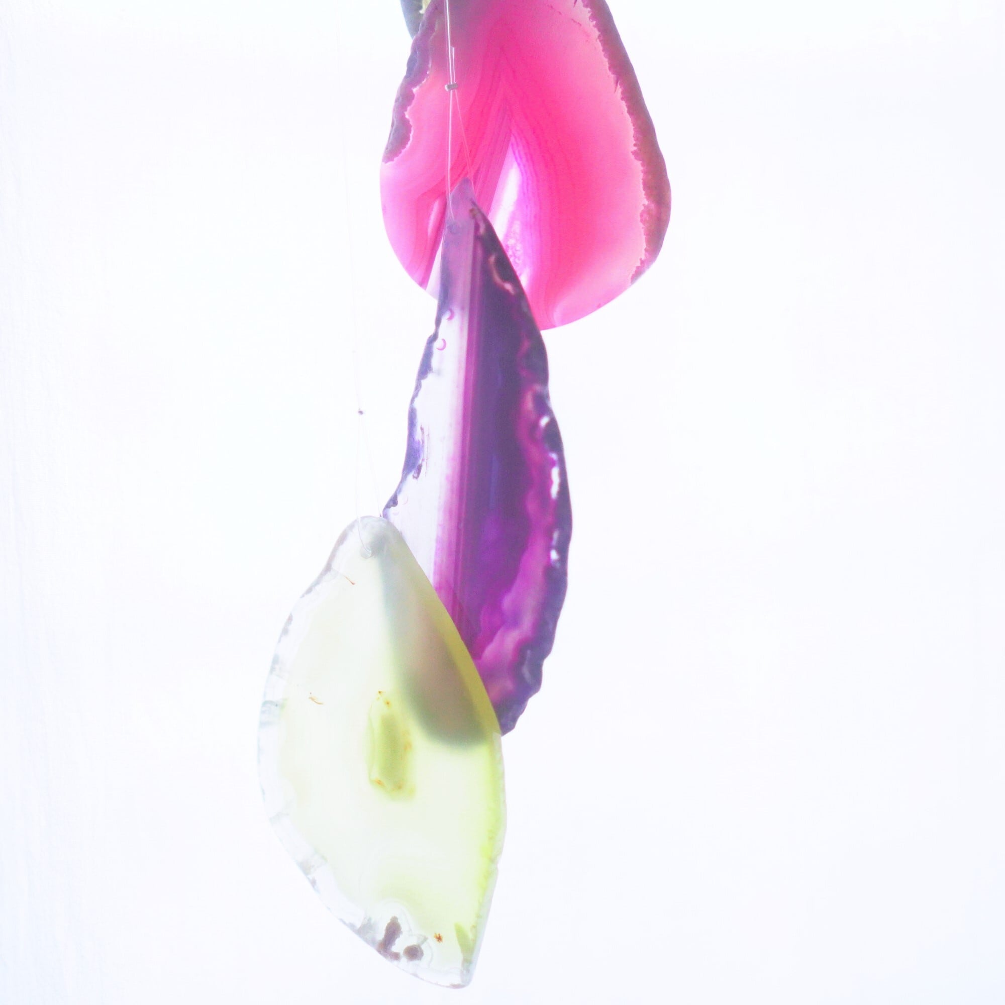 連なるアゲートが風を受けて揺れるとチリンチリン、美しい響きの音が鳴りとても癒されます。