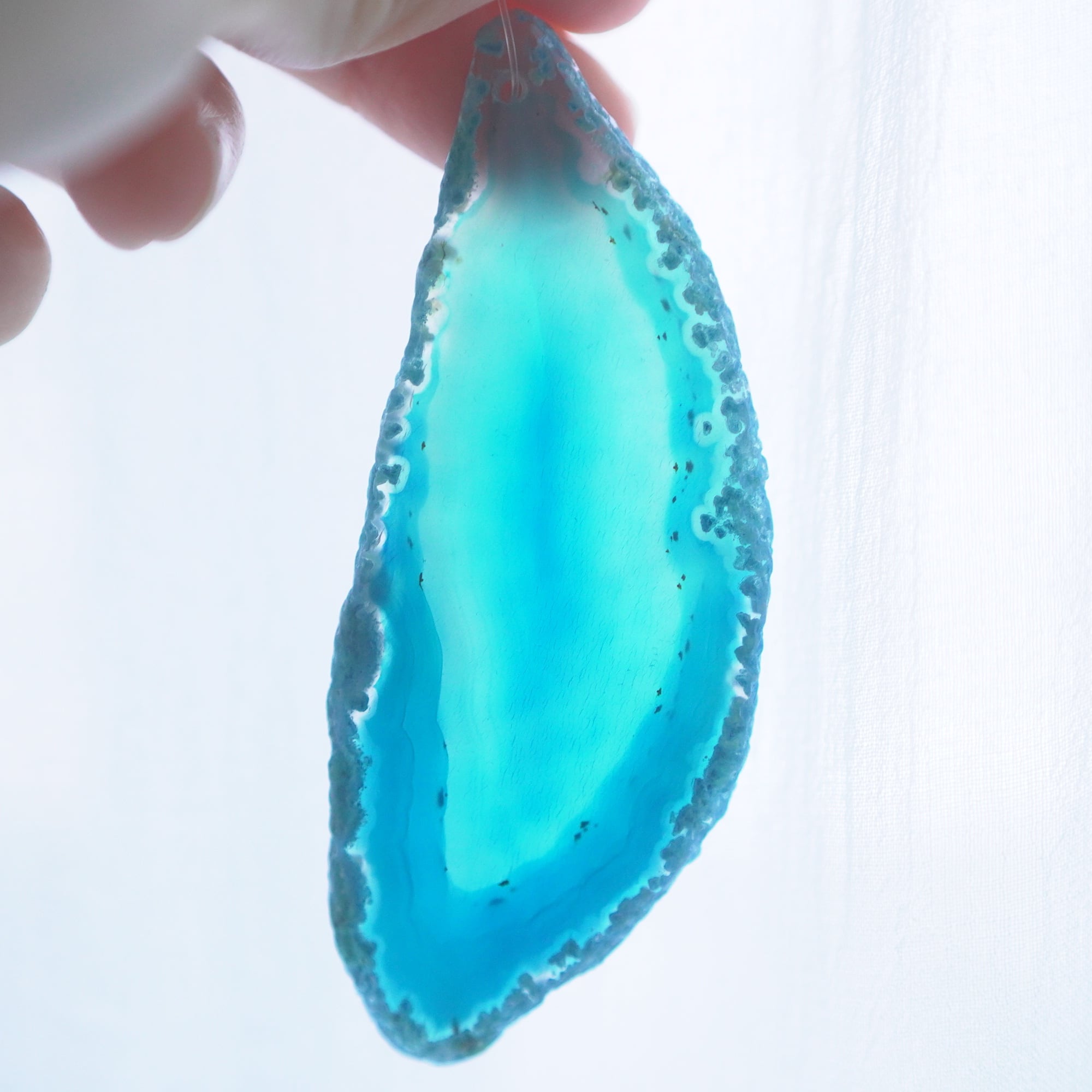 ✧✧✧染色の石なので耐光性(光による経年でのカラー変化の耐性)に優れているわけではなく一日の中で長時間強い日光に当たるような場所に飾られるのはおすすめしないのですが、陽光に透かした時にだけ真価を発揮する美しさがありますので、是非たまに翳したりして光と一緒にお楽しみいただけたらと思っております。特に濃い鮮やかな色など、気になられる場合は、日光のあまり当たらない場所に飾っていただけたらと思います✧✧✧