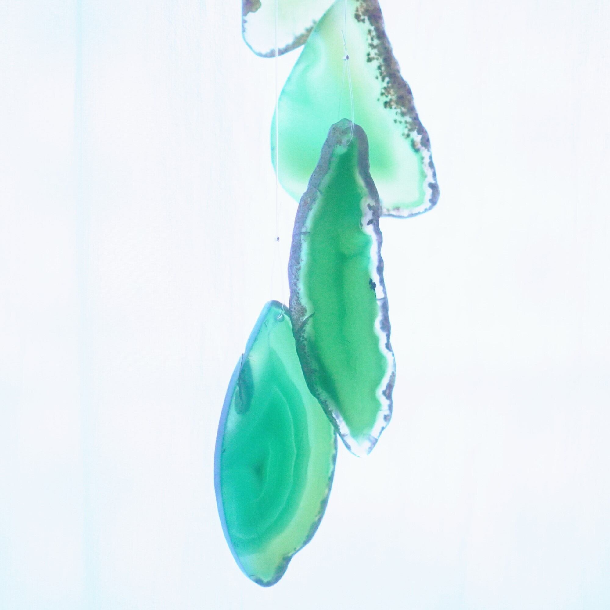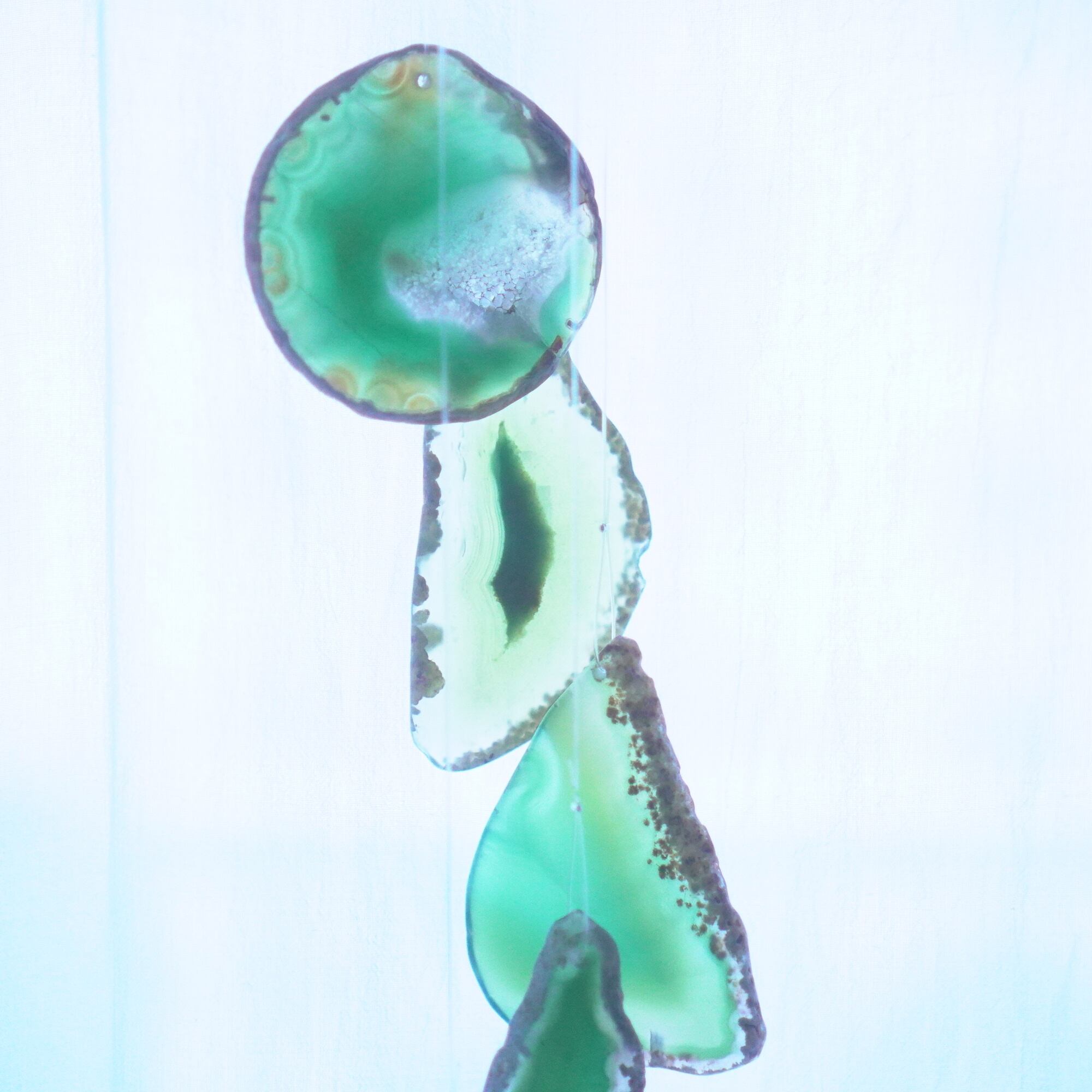 連なるアゲートが風を受けて揺れるとチリンチリン、美しい響きの音が鳴りとても癒されます。