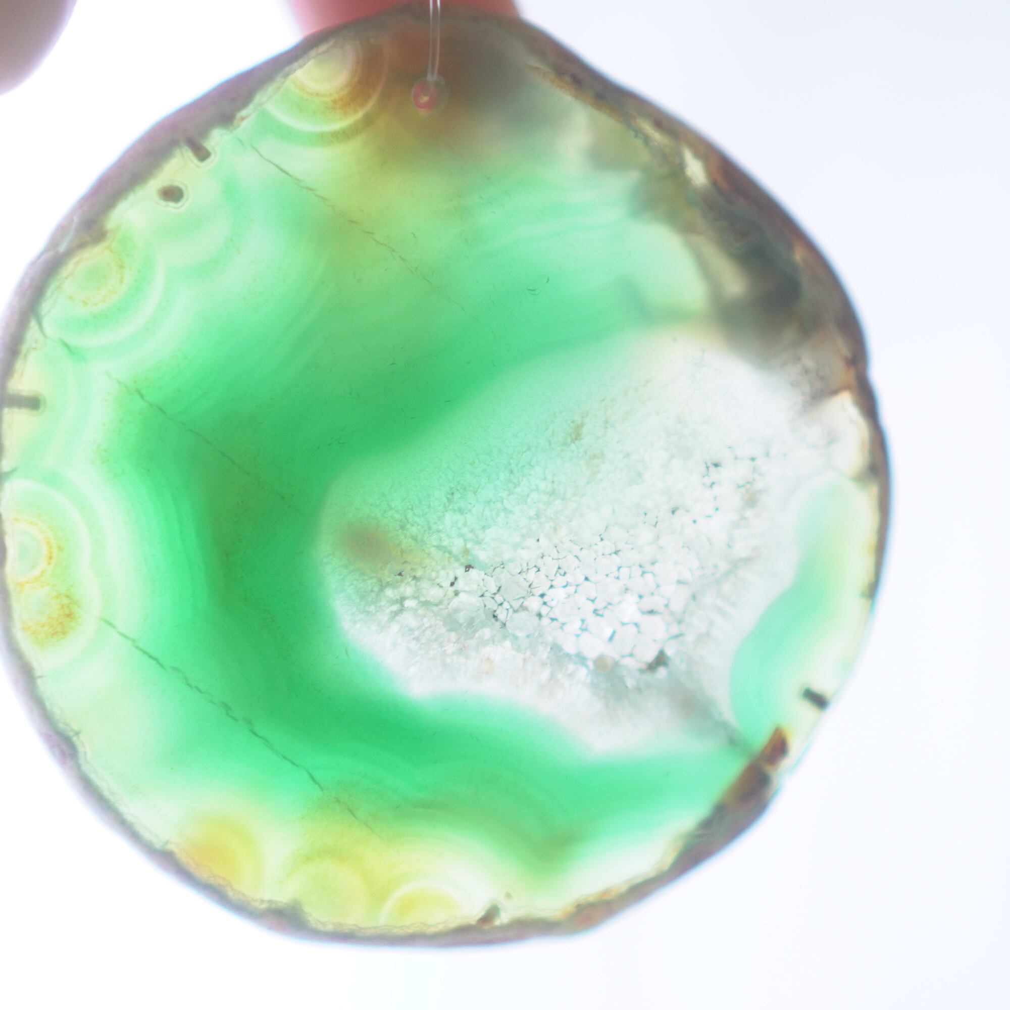 ✧✧✧染色の石なので耐光性(光による経年でのカラー変化の耐性)に優れているわけではなく一日の中で長時間強い日光に当たるような場所に飾られるのはおすすめしないのですが、陽光に透かした時にだけ真価を発揮する美しさがありますので、是非たまに翳したりして光と一緒にお楽しみいただけたらと思っております。特に濃い鮮やかな色など、気になられる場合は、日光のあまり当たらない場所に飾っていただけたらと思います✧✧✧