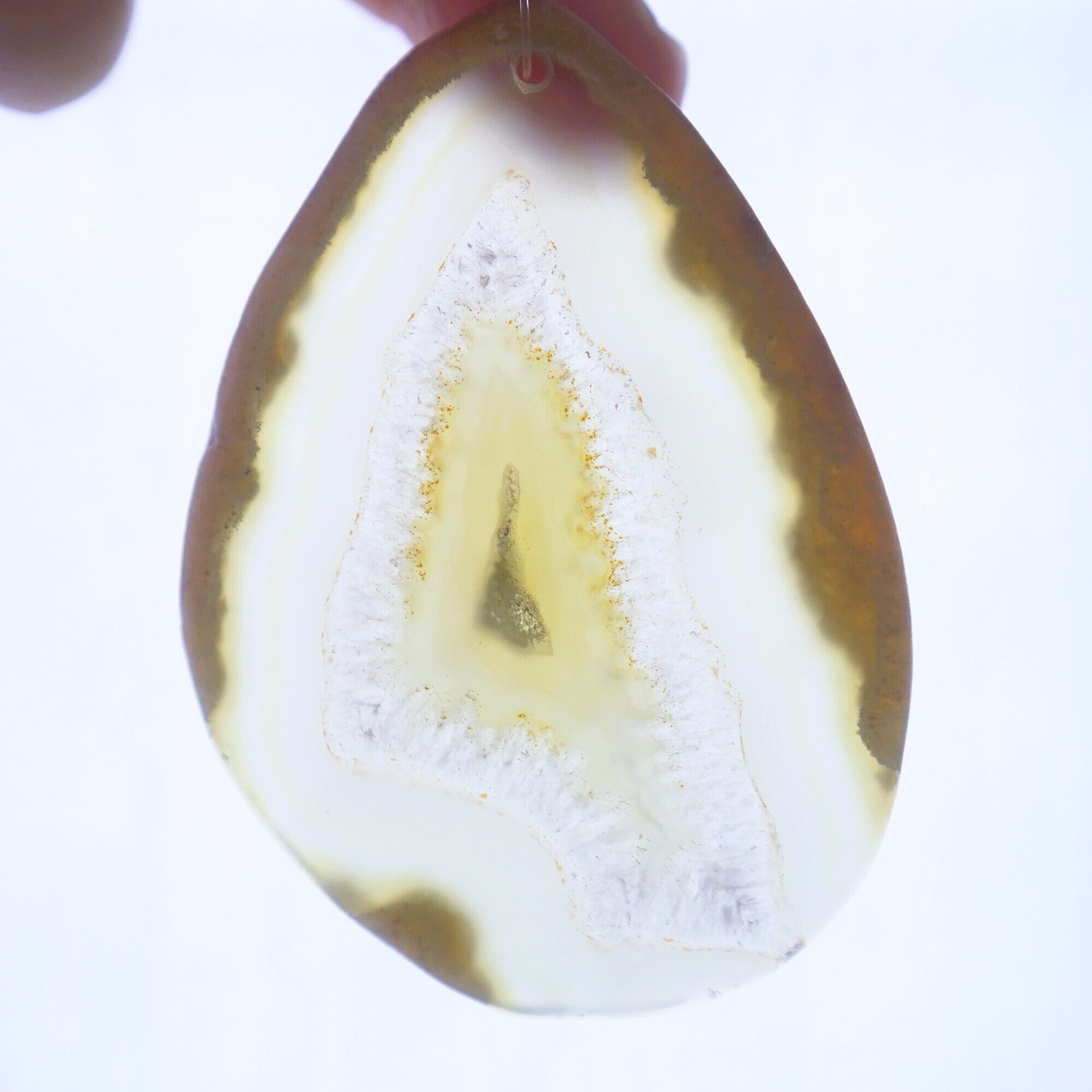 Agate Slice , Natural Wood , Nylon Cord , Metal