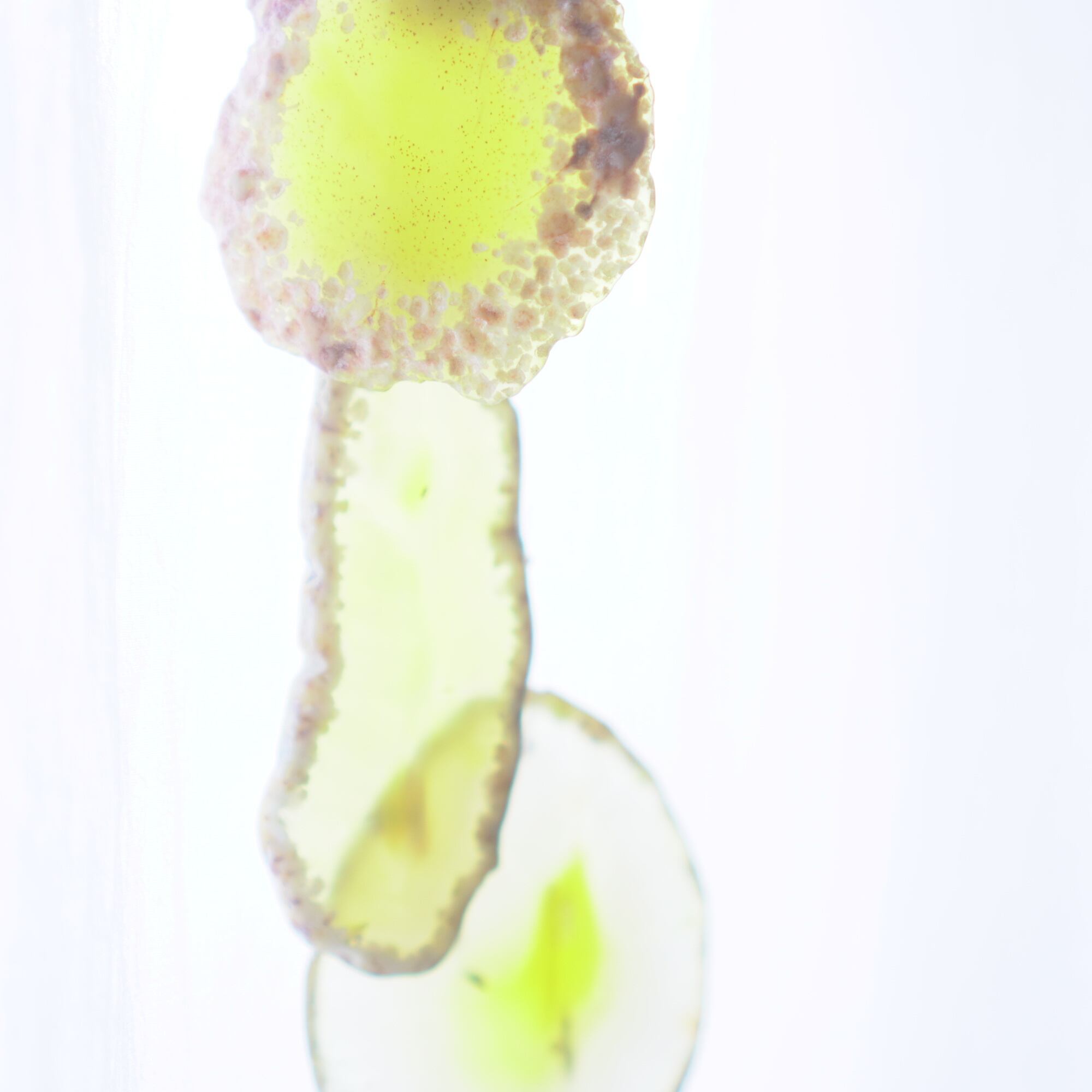 また、透明感が魅力でもあるので、窓際で自然光を通した際と、室内灯の下で光を通さずに見る際、異なる表情を見せてくれますのでその違いも是非お楽しみください。(写真の前半は自然光を透かせたもので、後半の4枚は光を透かさず壁を背景に撮影したものです)