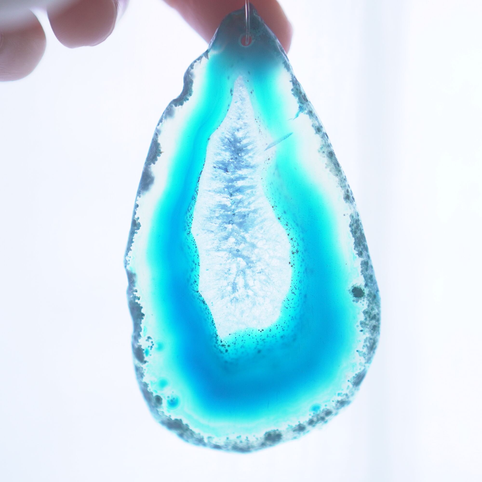 ✧✧✧染色の石なので耐光性(光による経年でのカラー変化の耐性)に優れているわけではなく一日の中で長時間強い日光に当たるような場所に飾られるのはおすすめしないのですが、陽光に透かした時にだけ真価を発揮する美しさがありますので、是非たまに翳したりして光と一緒にお楽しみいただけたらと思っております。特に濃い鮮やかな色など、気になられる場合は、日光のあまり当たらない場所に飾っていただけたらと思います✧✧✧