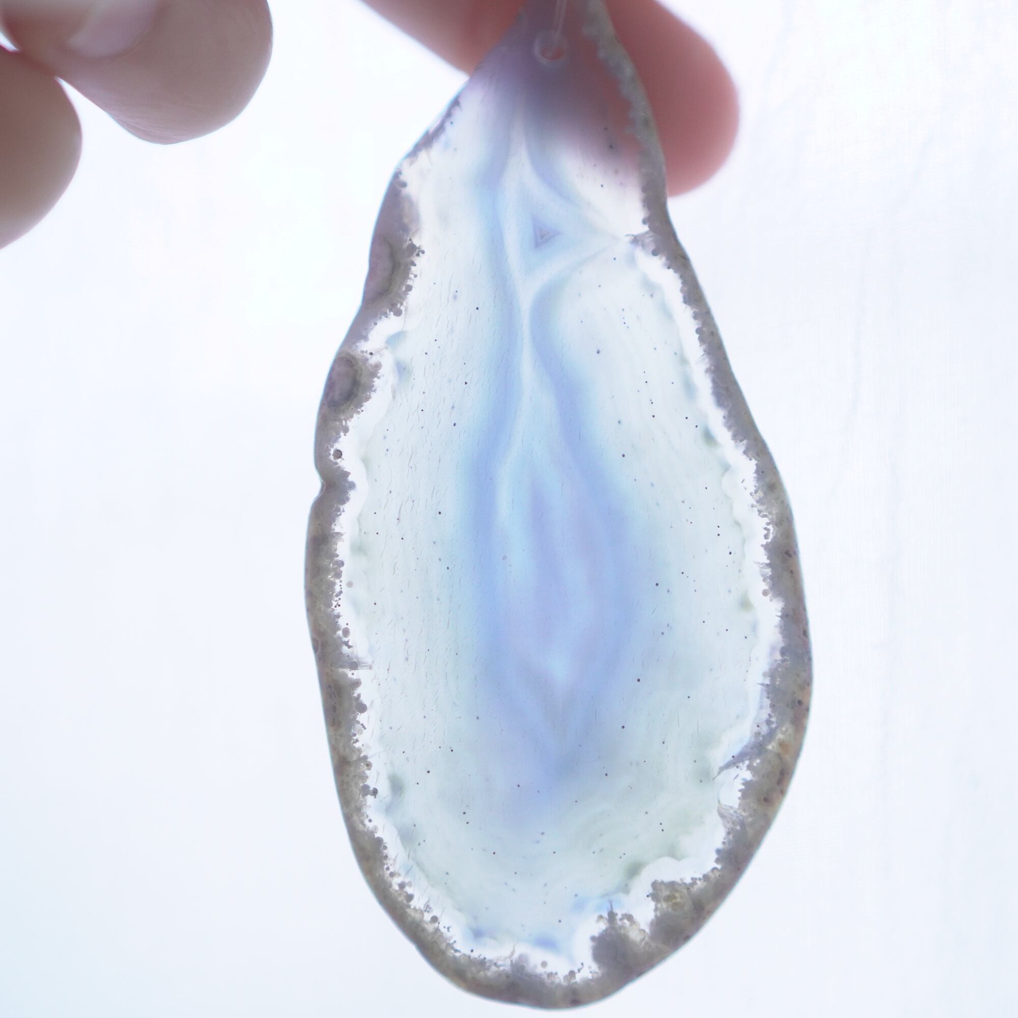 また、透明感が魅力でもあるので、窓際で自然光を通した際と、室内灯の下で光を通さずに見る際、異なる表情を見せてくれますのでその違いも是非お楽しみください。(写真の前半は自然光を透かせたもので、後半の4枚は光を透かさず壁を背景に撮影したものです)
