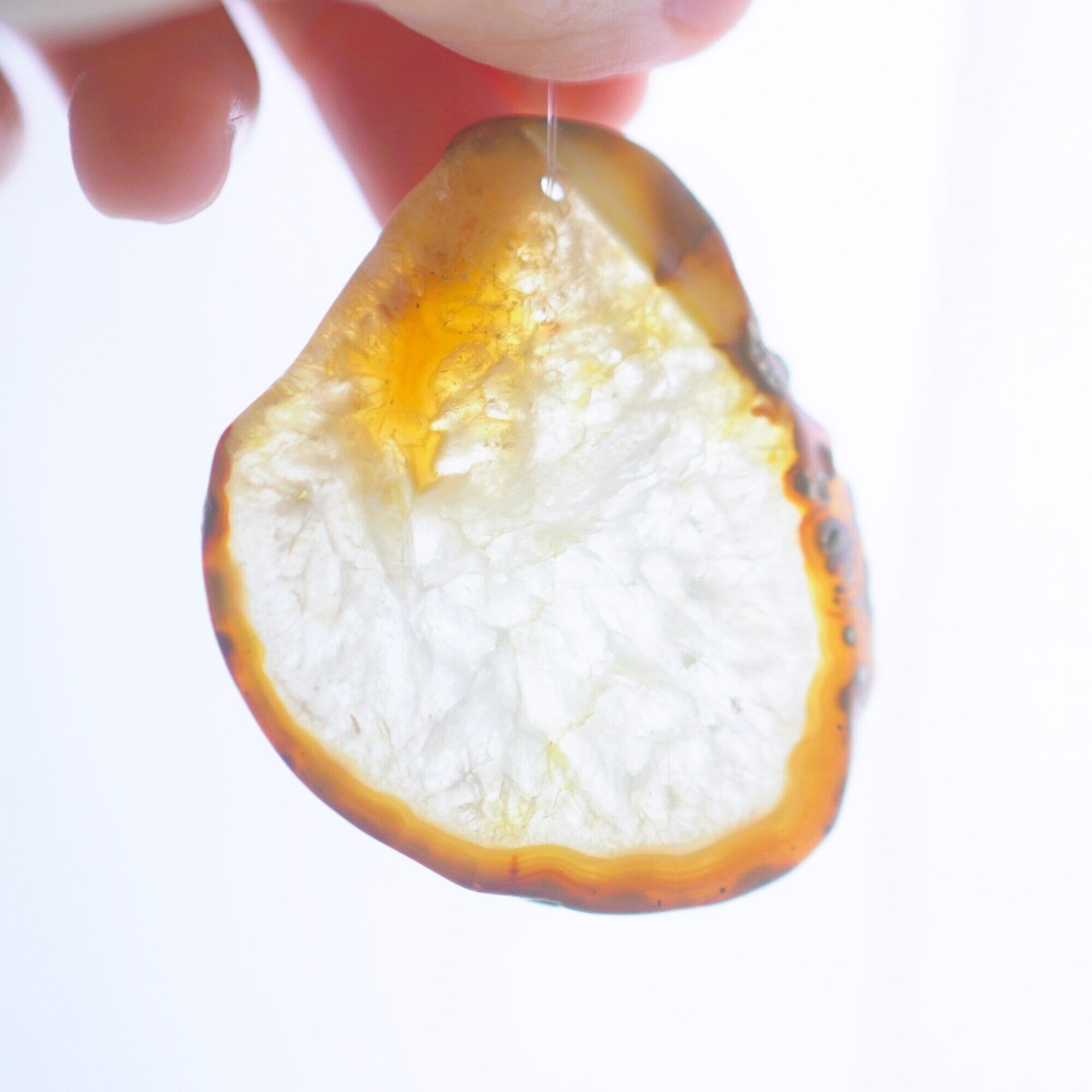✧✧✧染色の石なので耐光性(光による経年でのカラー変化の耐性)に優れているわけではなく一日の中で長時間強い日光に当たるような場所に飾られるのはおすすめしないのですが、陽光に透かした時にだけ真価を発揮する美しさがありますので、是非たまに翳したりして光と一緒にお楽しみいただけたらと思っております。特に濃い鮮やかな色など、気になられる場合は、日光のあまり当たらない場所に飾っていただけたらと思います✧✧✧