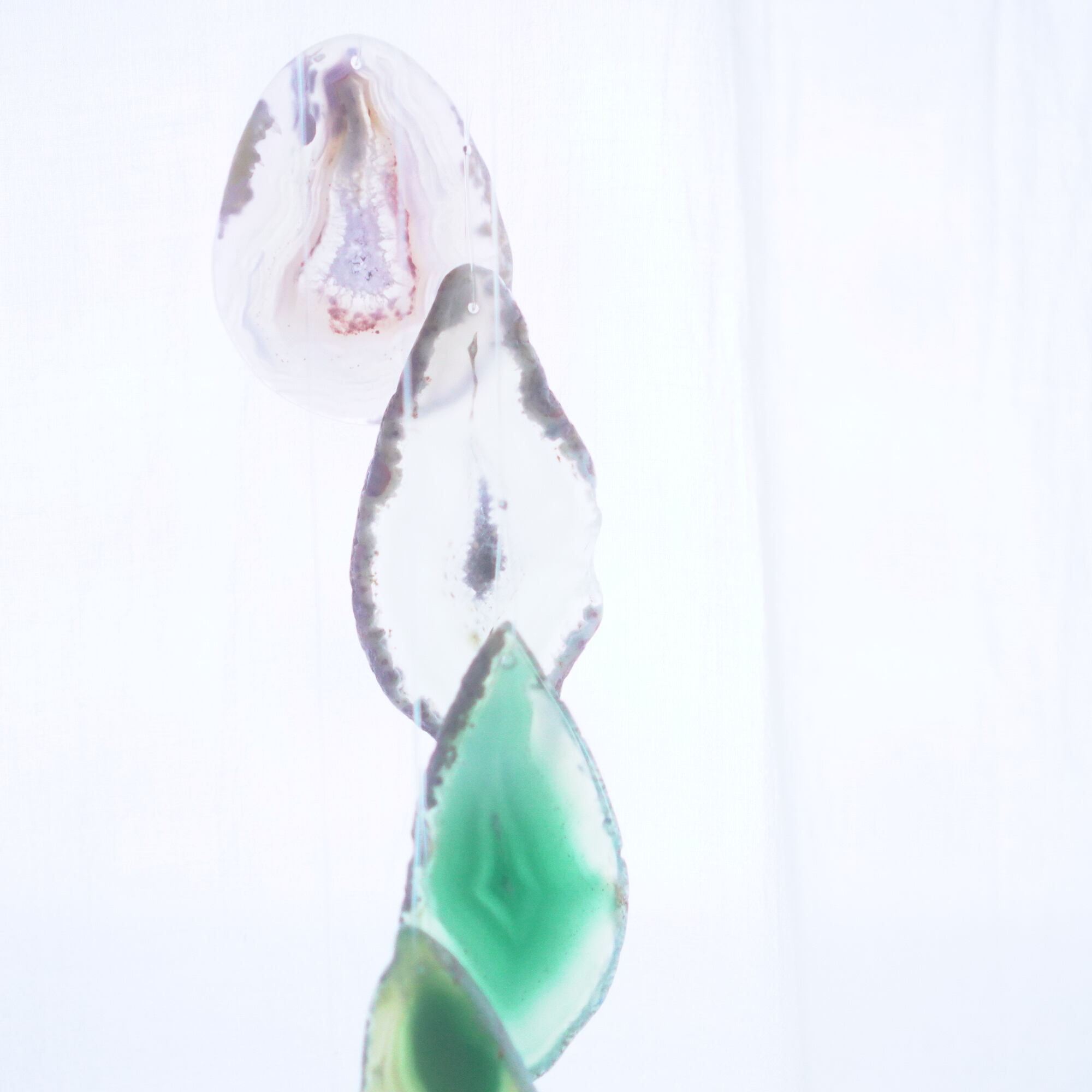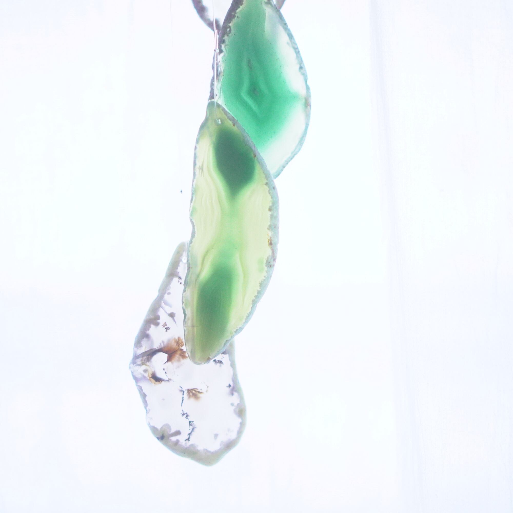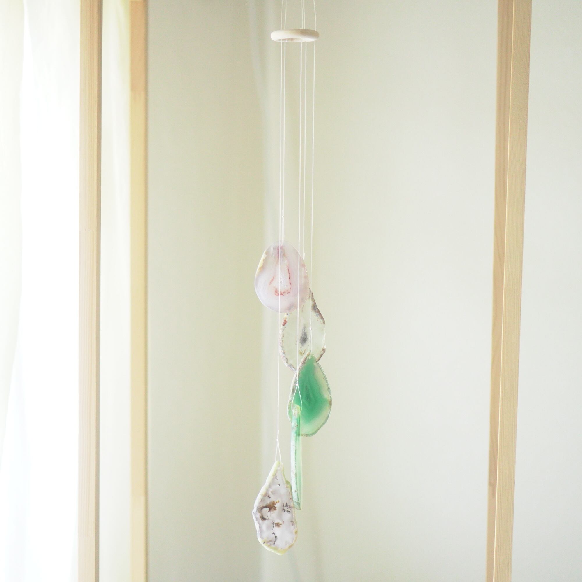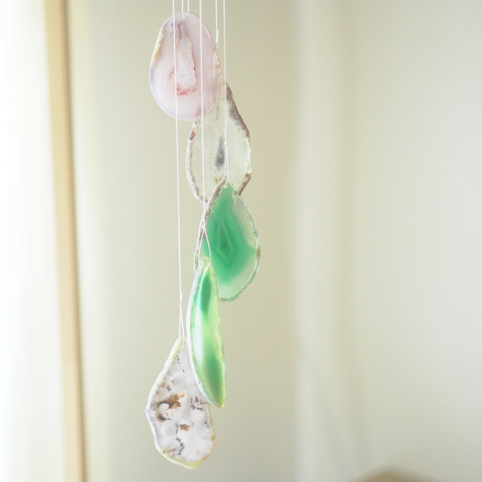 連なるアゲートが風を受けて揺れるとチリンチリン、美しい響きの音が鳴りとても癒されます。