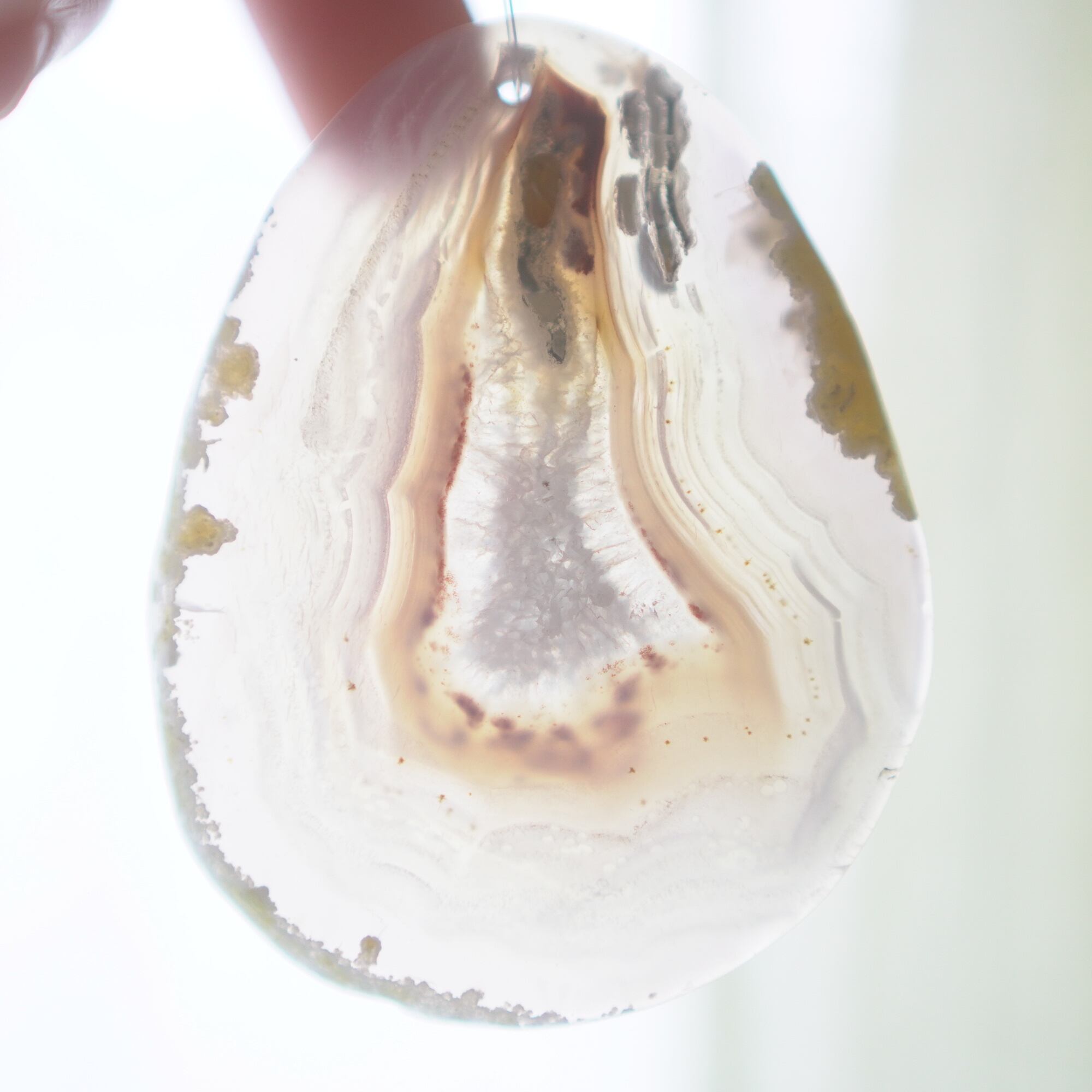 Agate Slice , Natural Wood , Nylon Cord , Metal