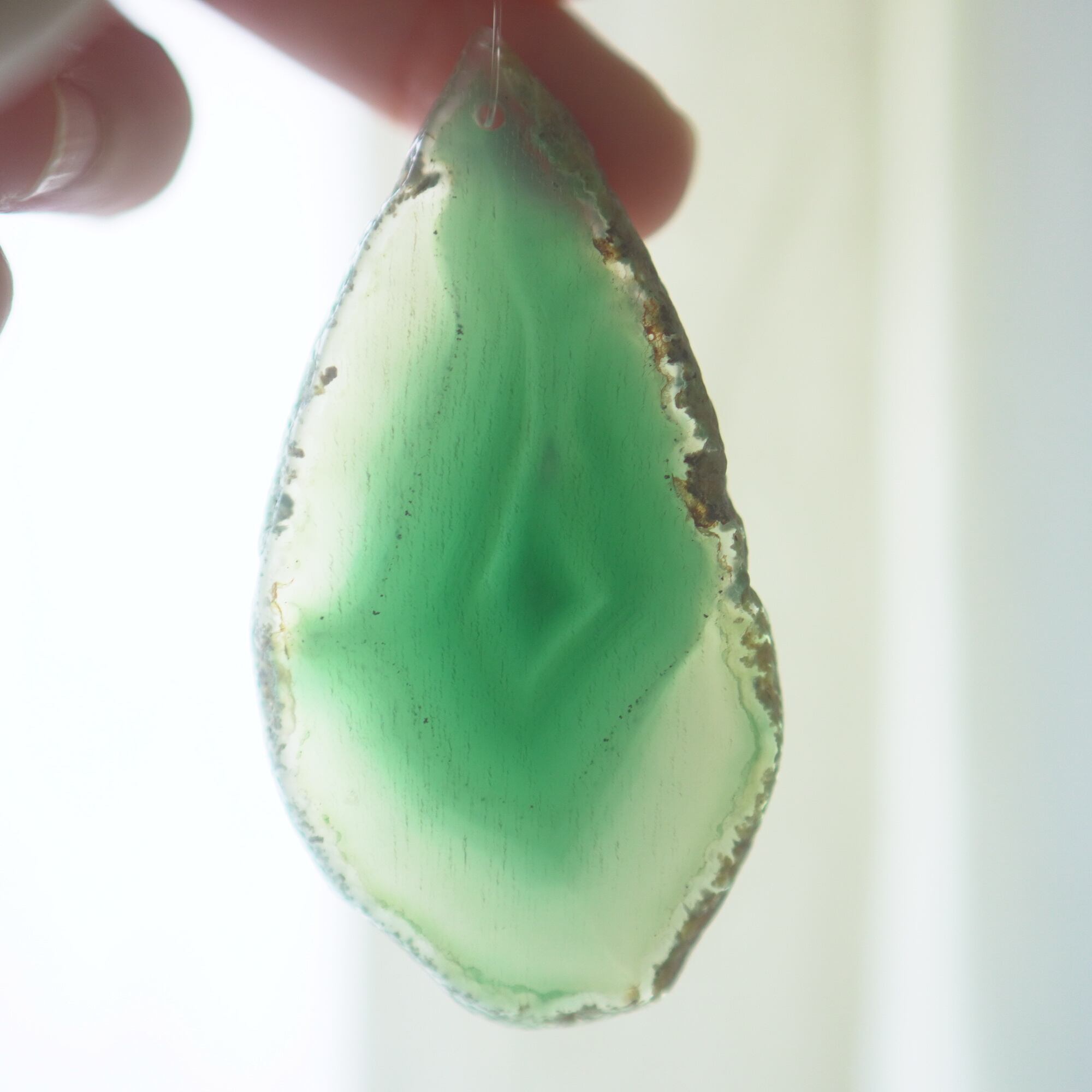 ✧✧✧染色の石なので耐光性(光による経年でのカラー変化の耐性)に優れているわけではなく一日の中で長時間強い日光に当たるような場所に飾られるのはおすすめしないのですが、陽光に透かした時にだけ真価を発揮する美しさがありますので、是非たまに翳したりして光と一緒にお楽しみいただけたらと思っております。特に濃い鮮やかな色など、気になられる場合は、日光のあまり当たらない場所に飾っていただけたらと思います✧✧✧