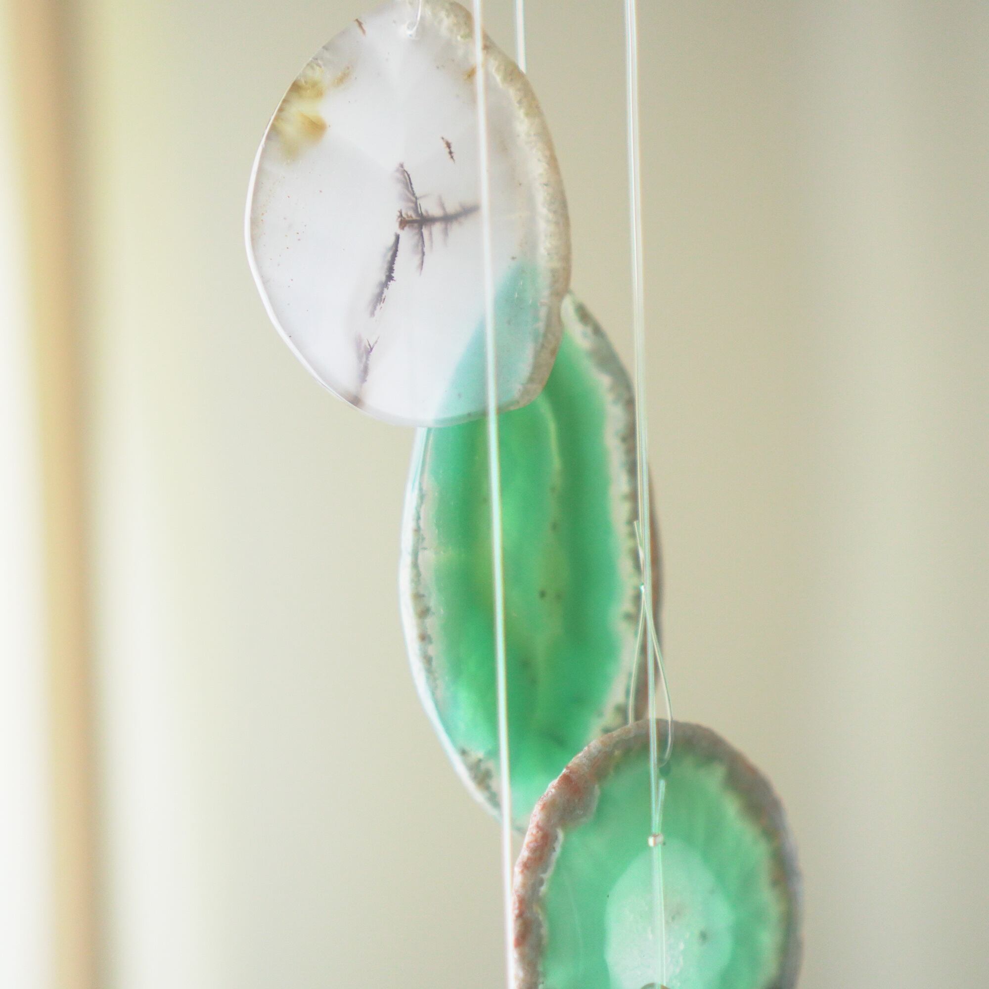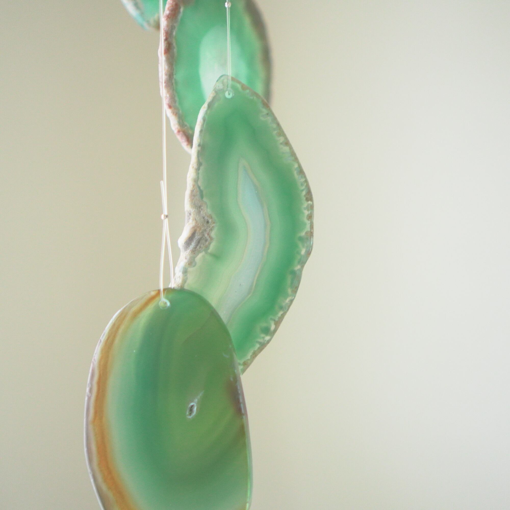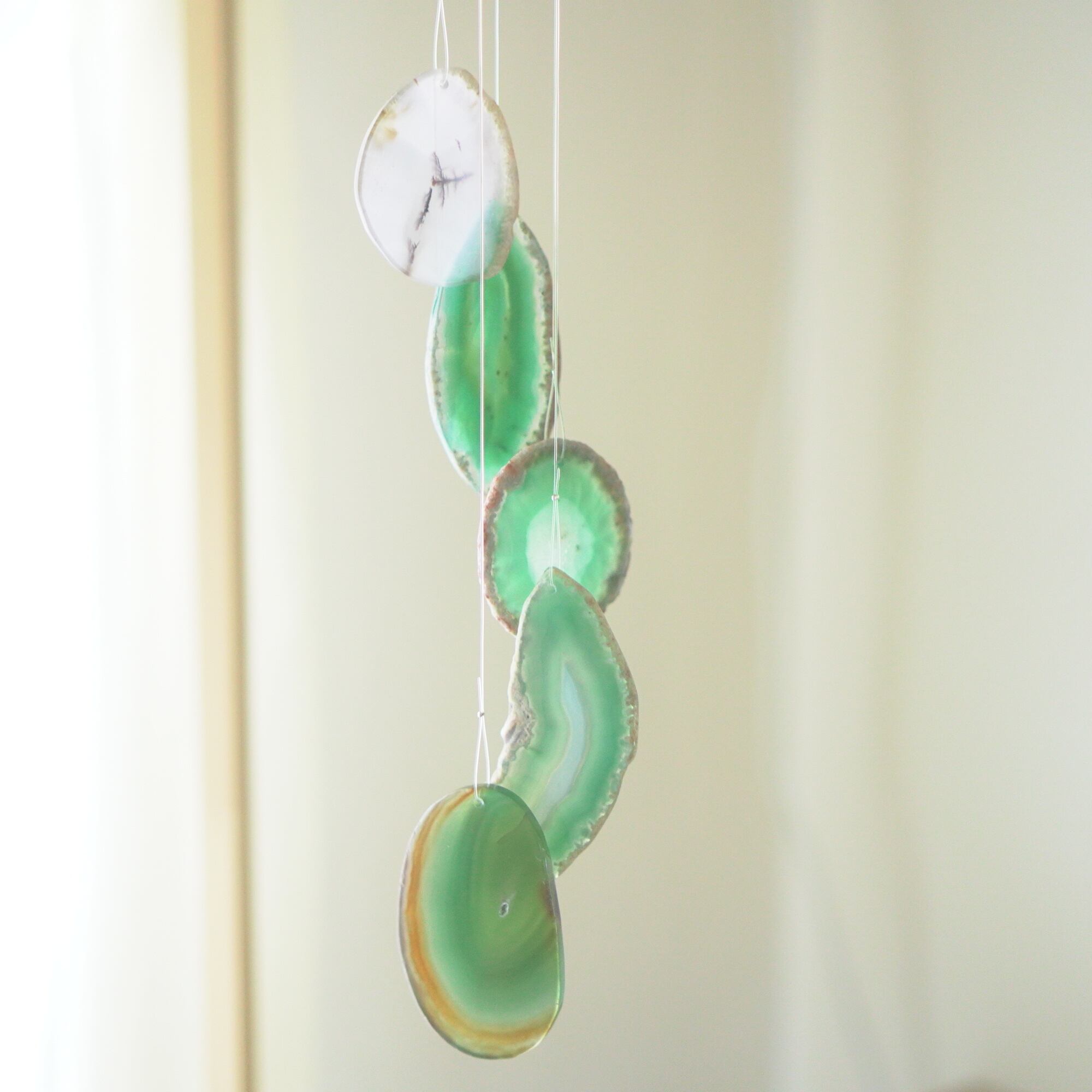 連なるアゲートが風を受けて揺れるとチリンチリン、美しい響きの音が鳴りとても癒されます。
