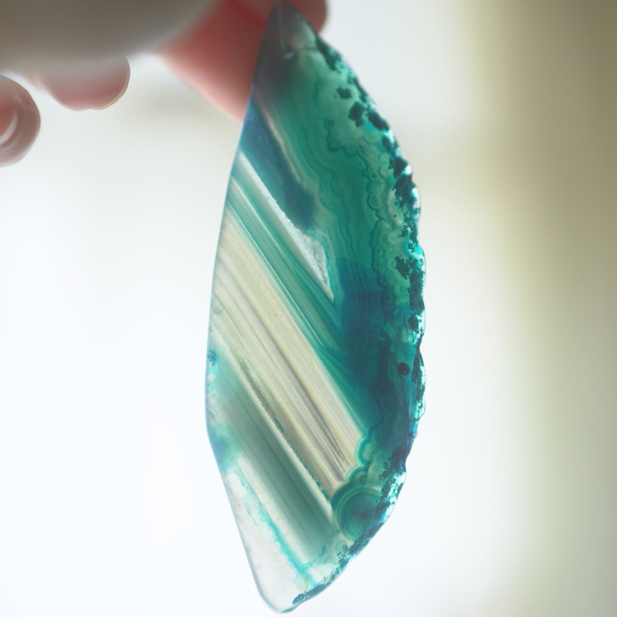 ✧✧✧染色の石なので耐光性(光による経年でのカラー変化の耐性)に優れているわけではなく一日の中で長時間強い日光に当たるような場所に飾られるのはおすすめしないのですが、陽光に透かした時にだけ真価を発揮する美しさがありますので、是非たまに翳したりして光と一緒にお楽しみいただけたらと思っております。特に濃い鮮やかな色など、気になられる場合は、日光のあまり当たらない場所に飾っていただけたらと思います✧✧✧