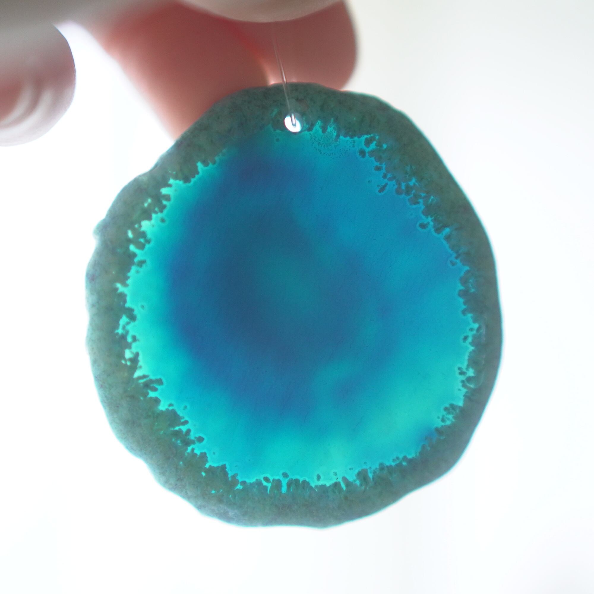 ✧✧✧染色の石なので耐光性(光による経年でのカラー変化の耐性)に優れているわけではなく一日の中で長時間強い日光に当たるような場所に飾られるのはおすすめしないのですが、陽光に透かした時にだけ真価を発揮する美しさがありますので、是非たまに翳したりして光と一緒にお楽しみいただけたらと思っております。特に濃い鮮やかな色など、気になられる場合は、日光のあまり当たらない場所に飾っていただけたらと思います✧✧✧