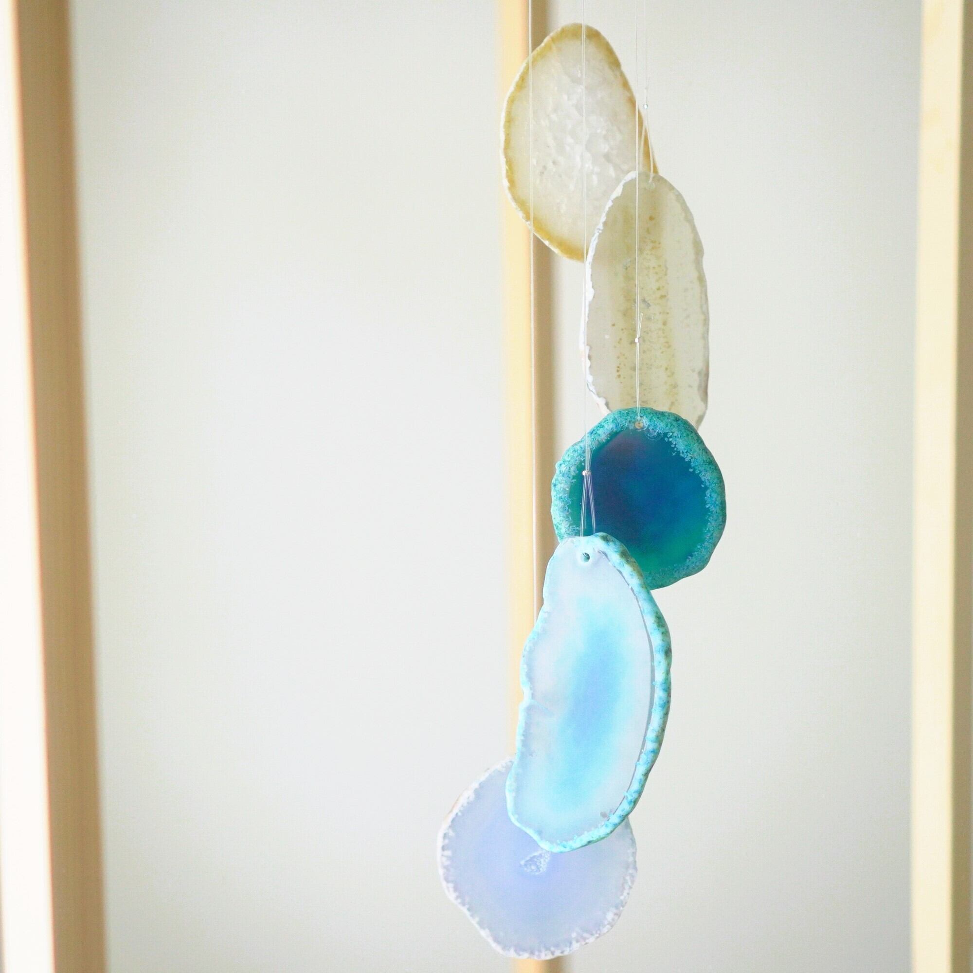連なるアゲートが風を受けて揺れるとチリンチリン、美しい響きの音が鳴りとても癒されます。