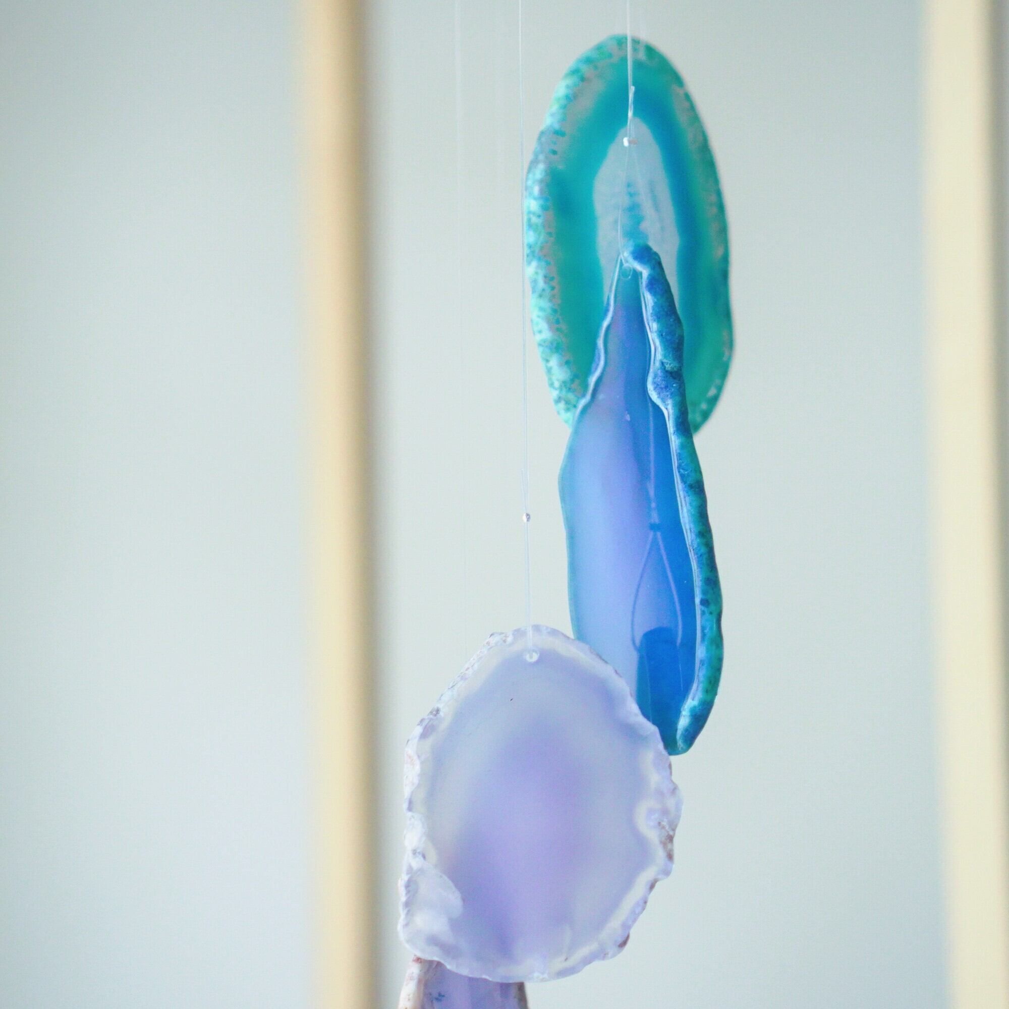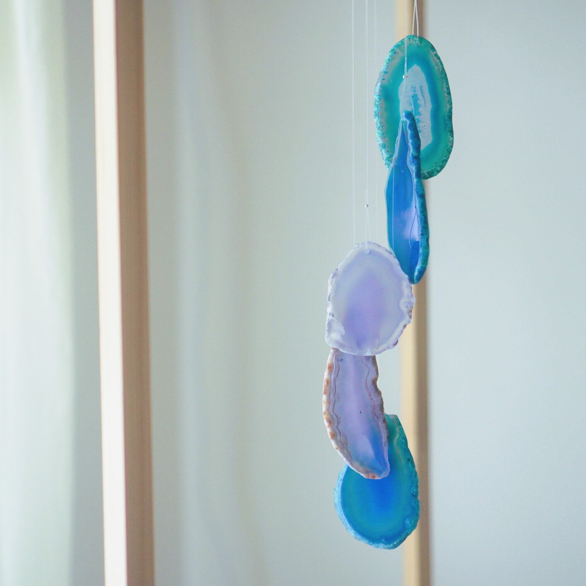 連なるアゲートが風を受けて揺れるとチリンチリン、美しい響きの音が鳴りとても癒されます。