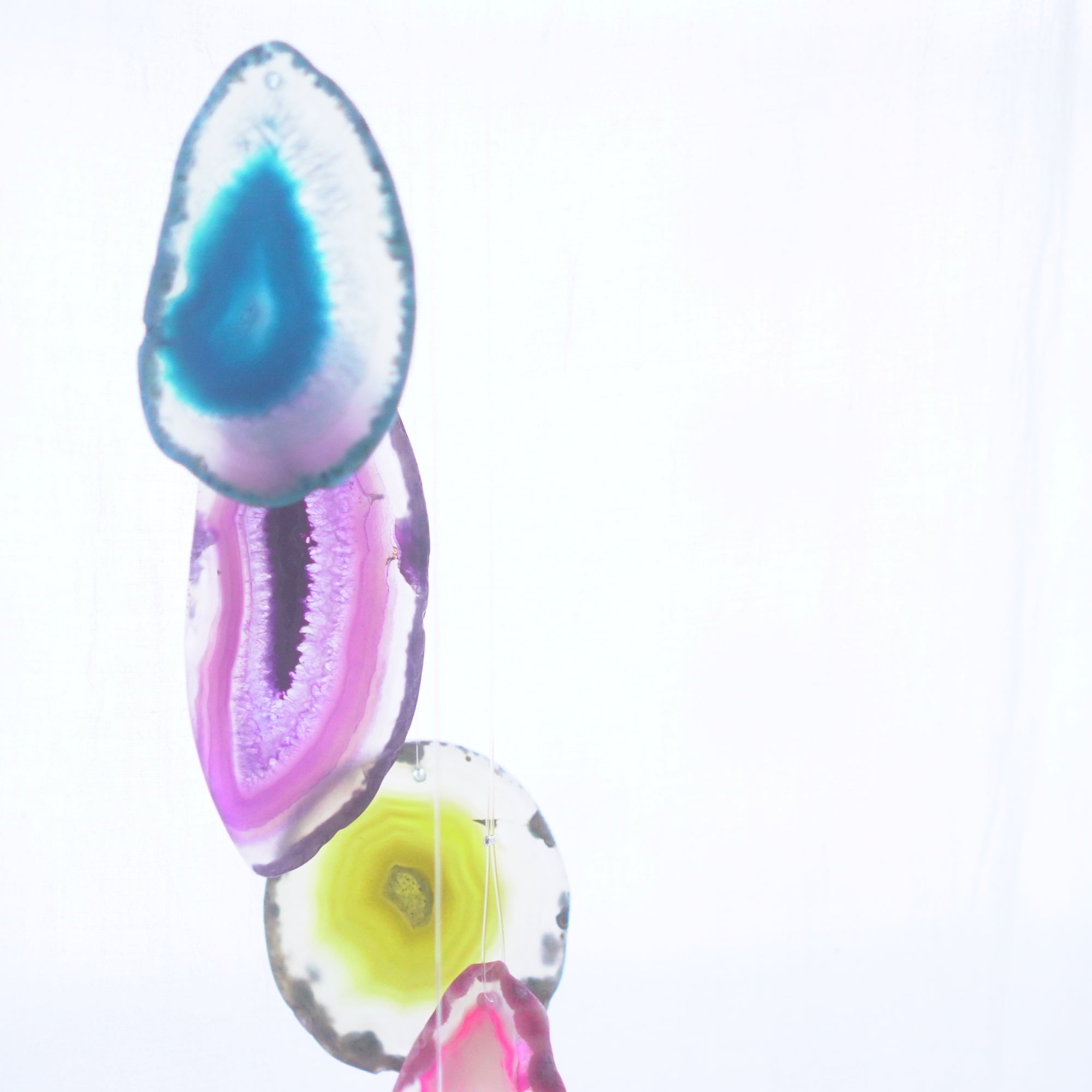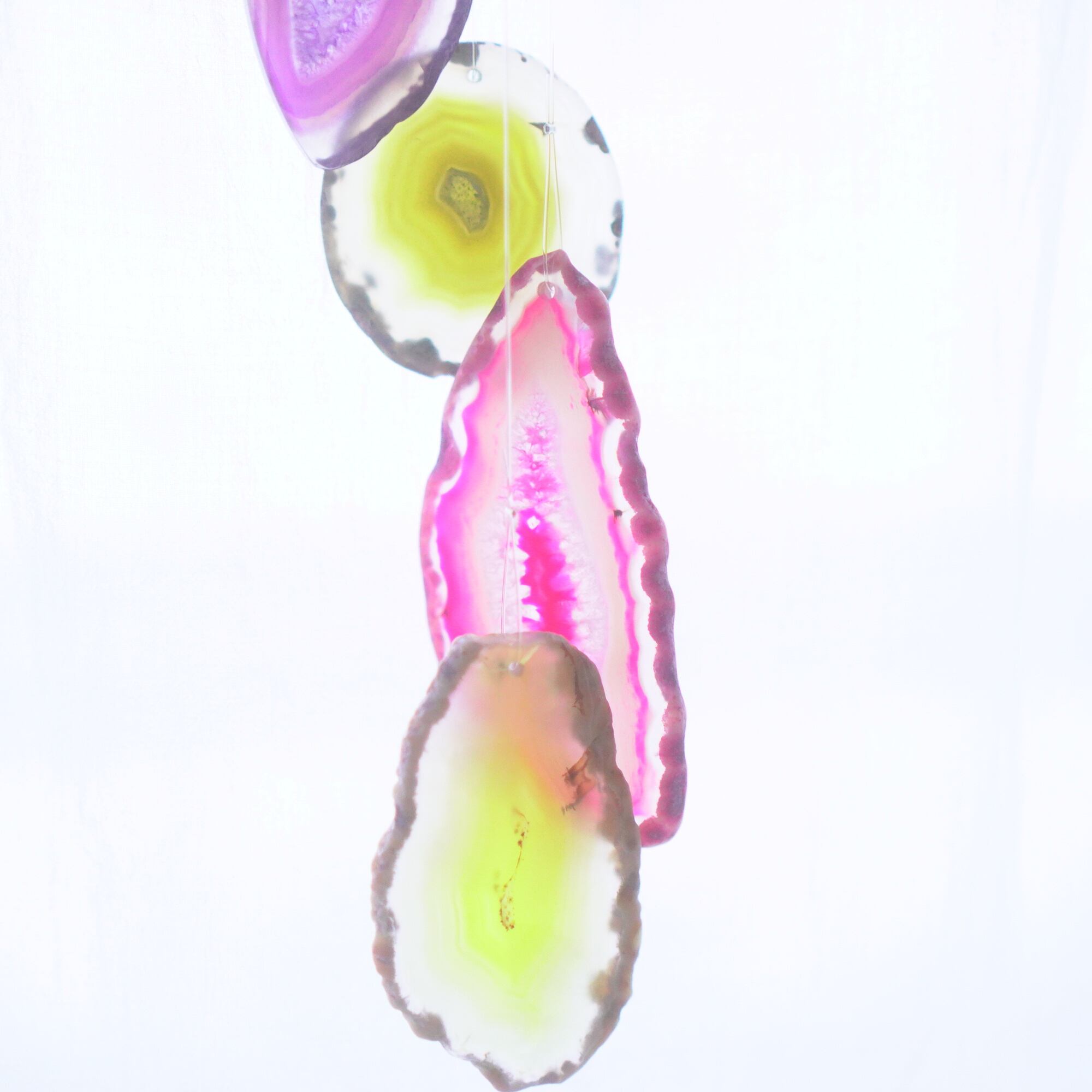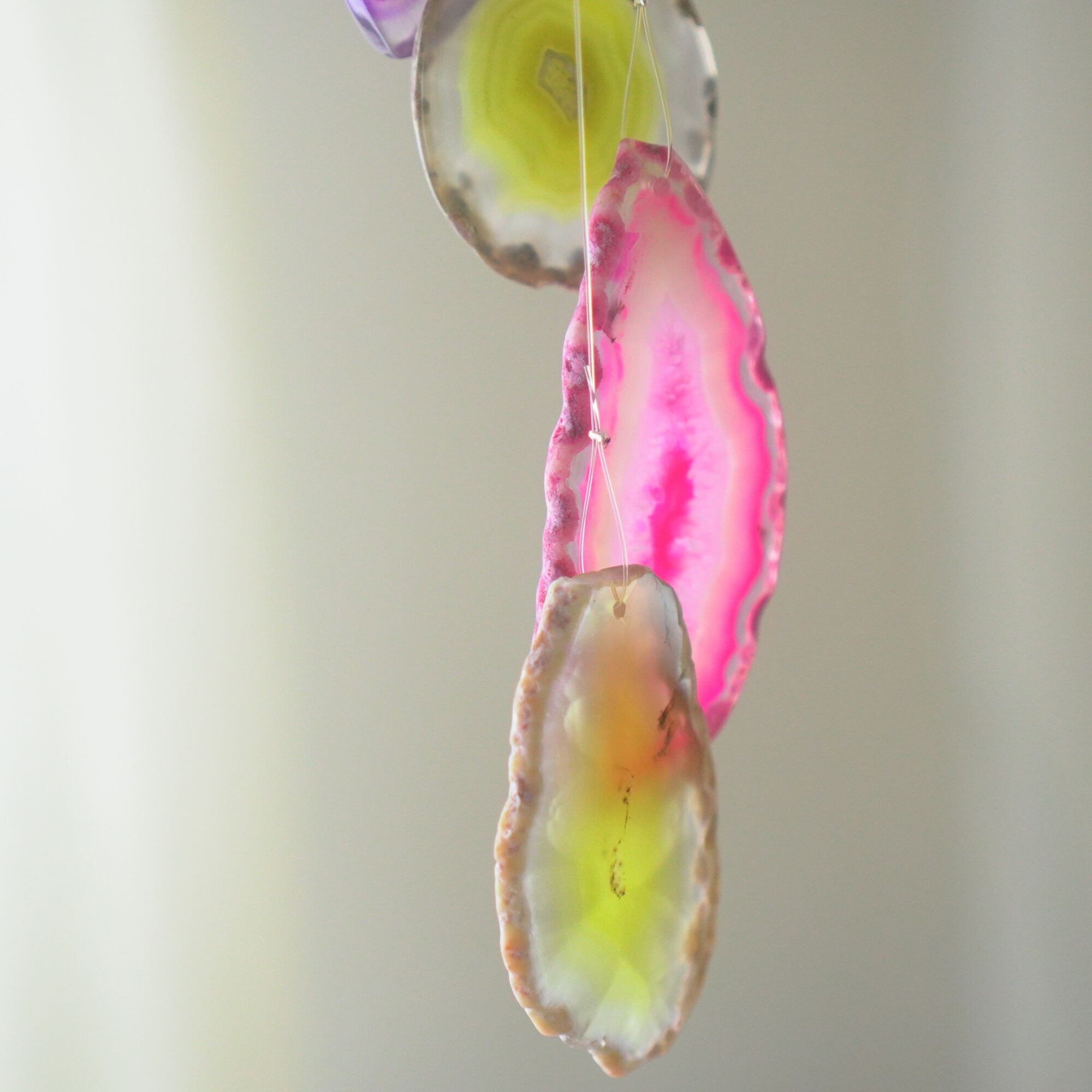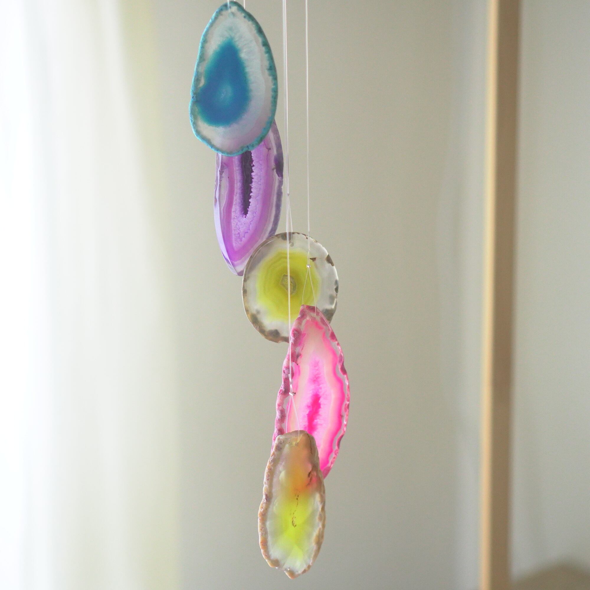 連なるアゲートが風を受けて揺れるとチリンチリン、美しい響きの音が鳴りとても癒されます。