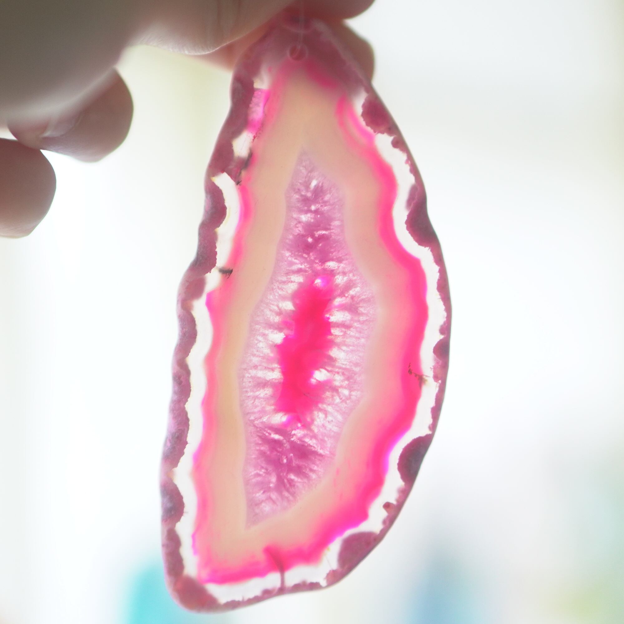 ✧✧✧染色の石なので耐光性(光による経年でのカラー変化の耐性)に優れているわけではなく一日の中で長時間強い日光に当たるような場所に飾られるのはおすすめしないのですが、陽光に透かした時にだけ真価を発揮する美しさがありますので、是非たまに翳したりして光と一緒にお楽しみいただけたらと思っております。特に濃い鮮やかな色など、気になられる場合は、日光のあまり当たらない場所に飾っていただけたらと思います✧✧✧