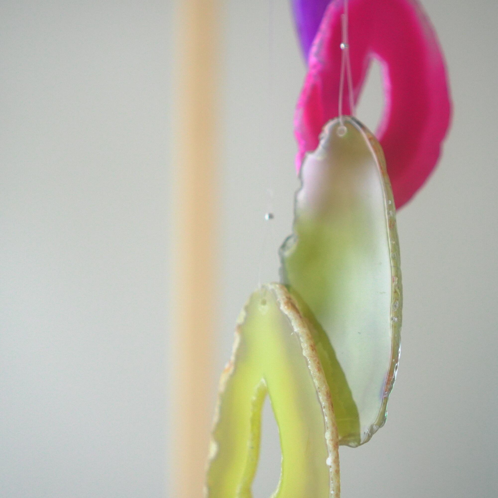 連なるアゲートが風を受けて揺れるとチリンチリン、美しい響きの音が鳴りとても癒されます。
