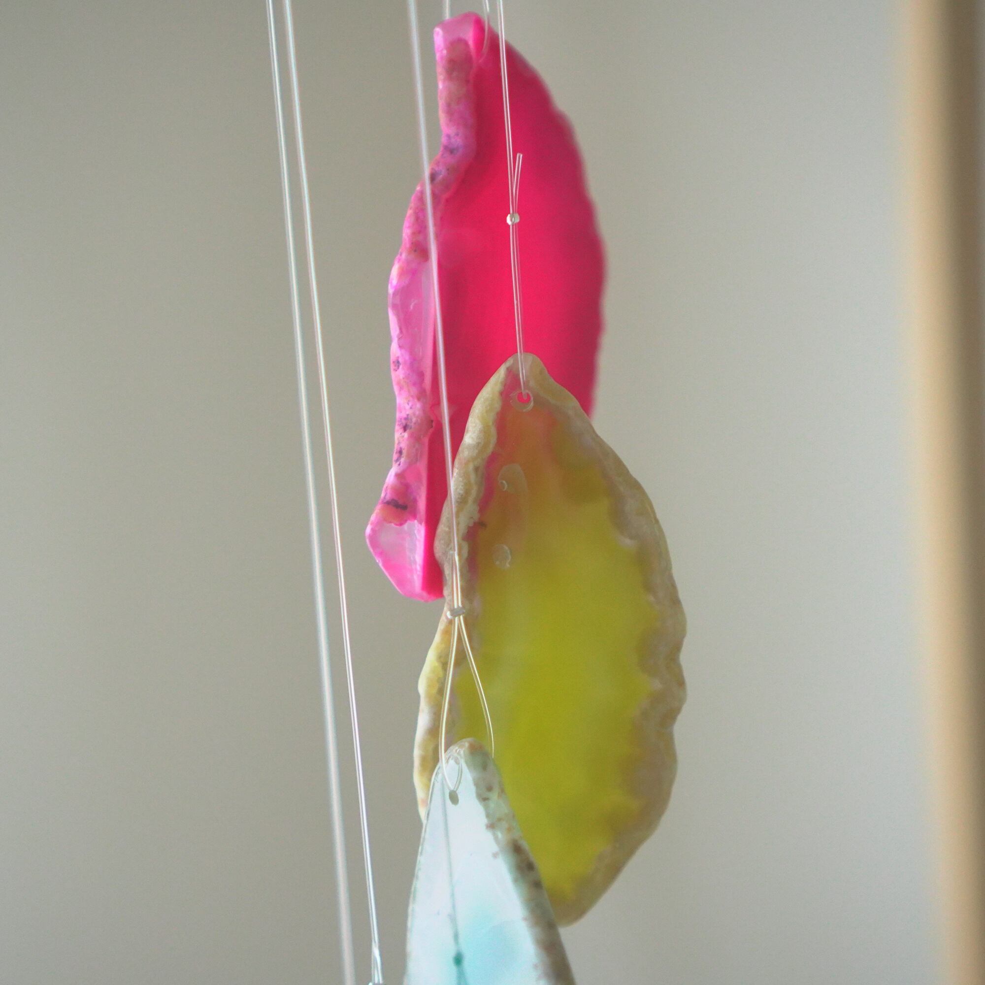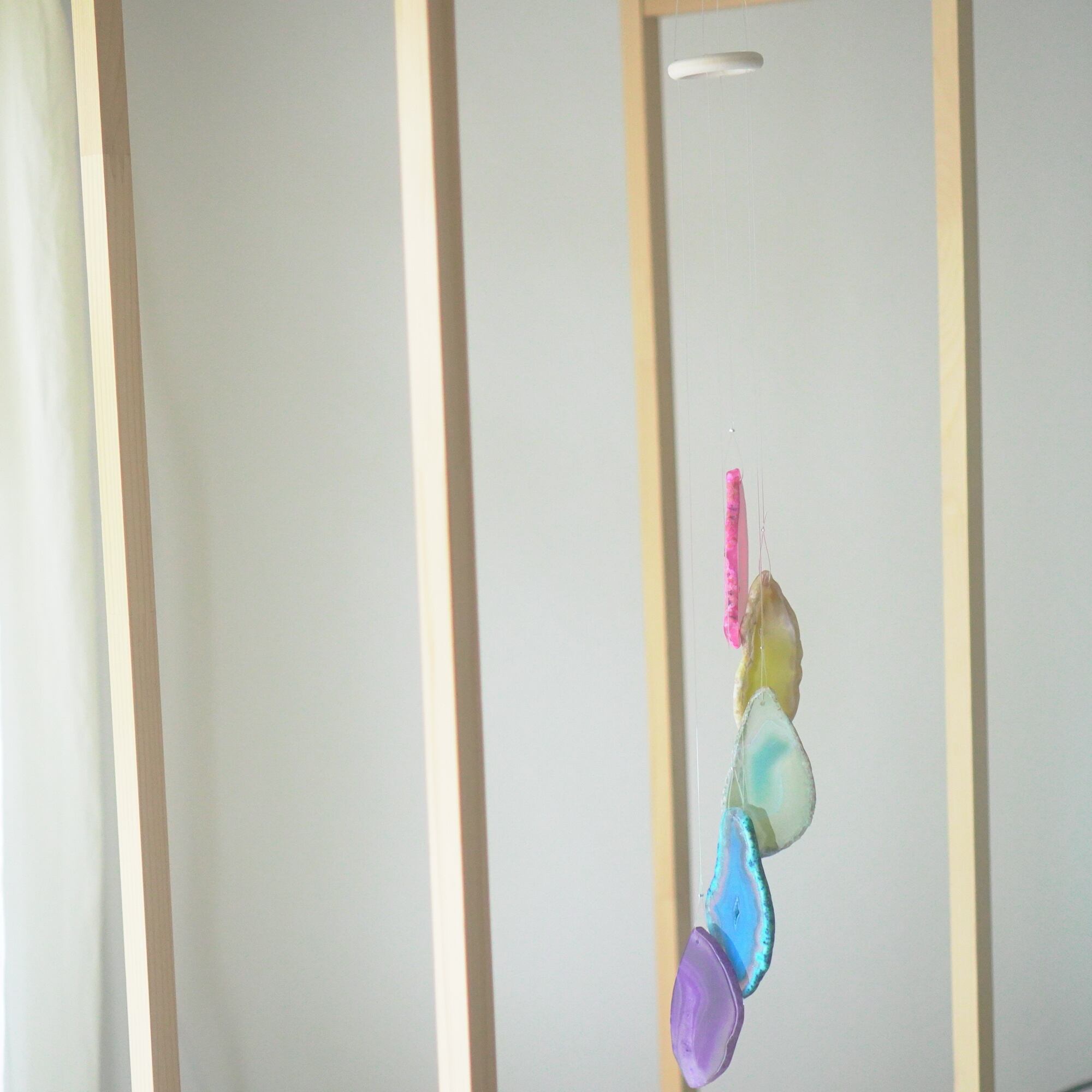 連なるアゲートが風を受けて揺れるとチリンチリン、美しい響きの音が鳴りとても癒されます。