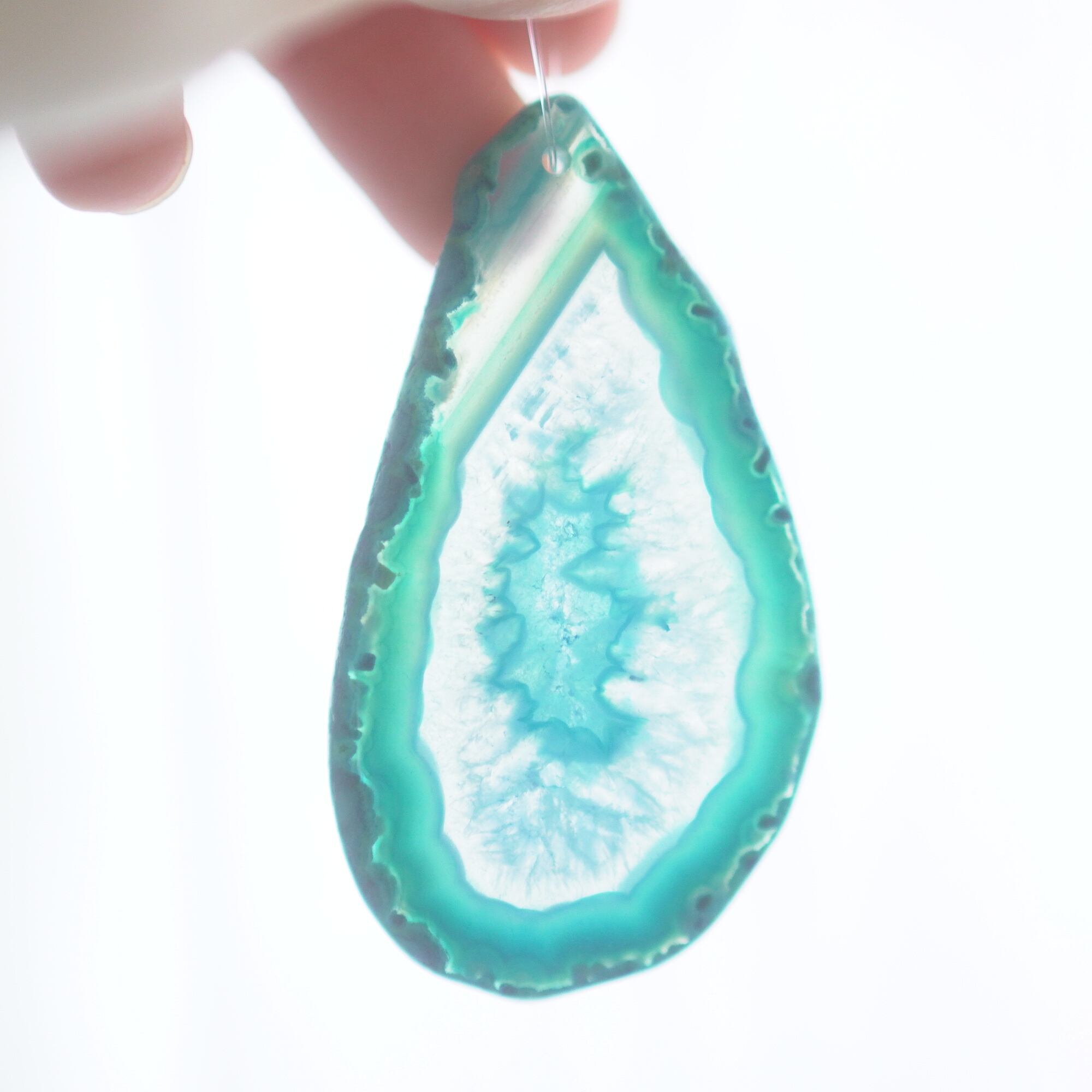 Agate Slice , Natural Wood , Nylon Cord , Metal