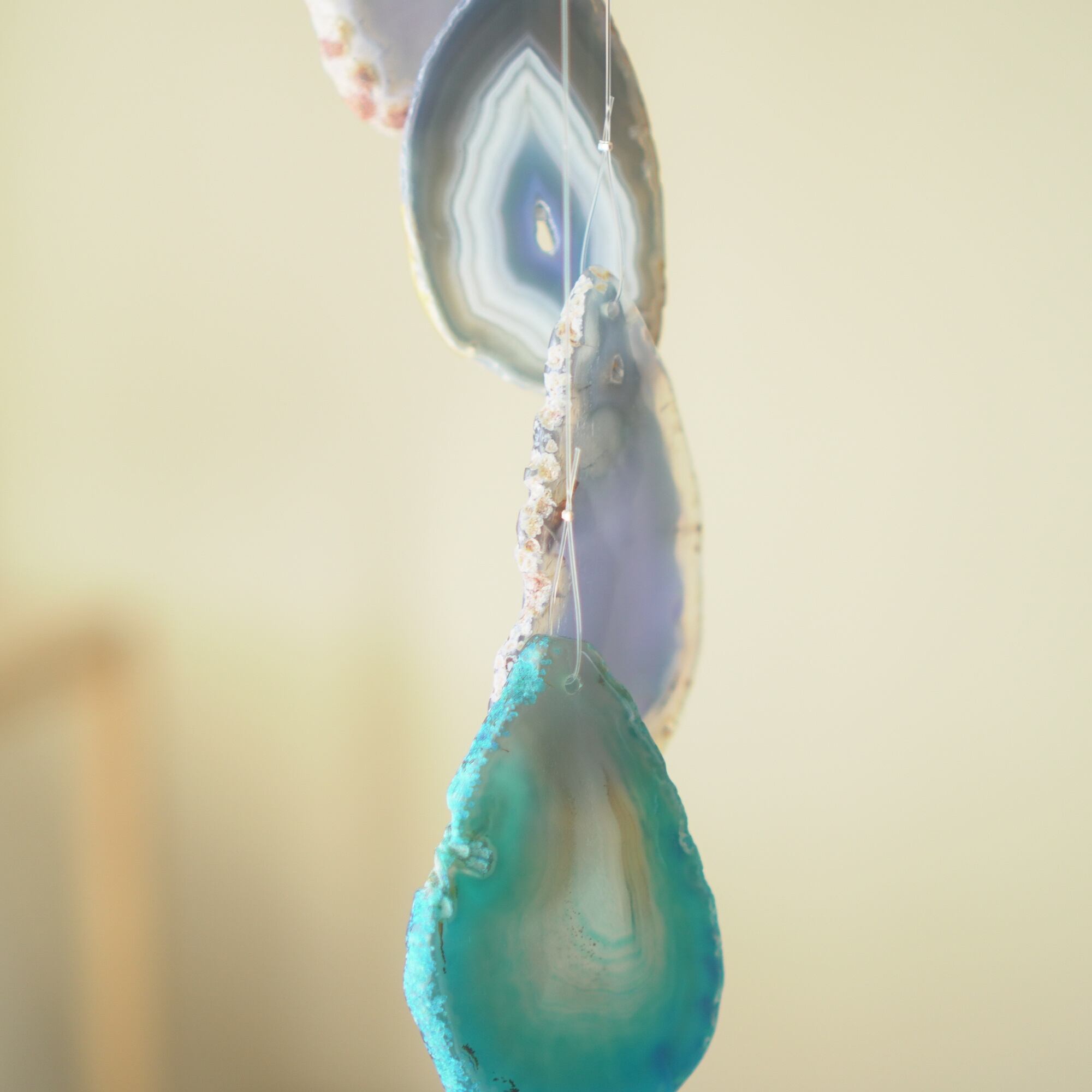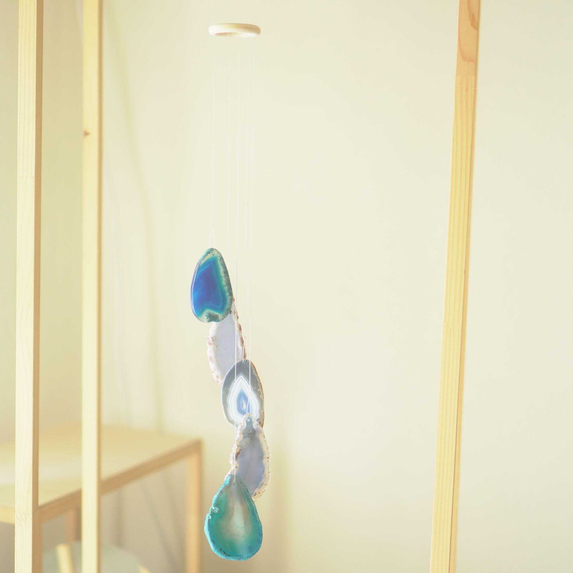 連なるアゲートが風を受けて揺れるとチリンチリン、美しい響きの音が鳴りとても癒されます。