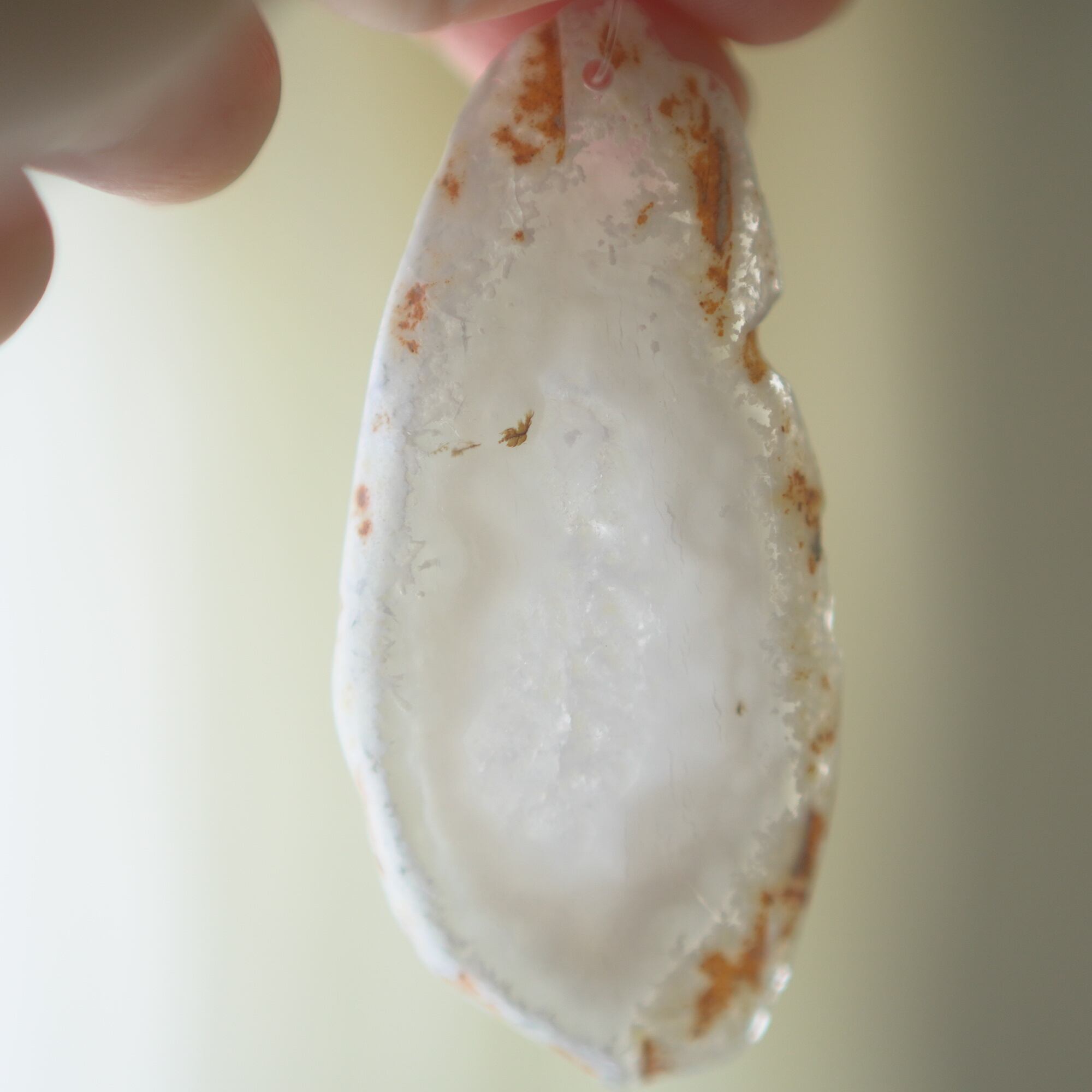 ✧✧✧瑪瑙の濃い色は染色によるもので、水に濡れたり布で擦ると多少色落ちします。飾るものなので大丈夫かと思いますが白いお洋服などには触れないようにされてください。汚れが気になる時は若干の色落ち前提で水を軽く含ませた布やティッシュでやさしく拭いていただくことは大丈夫です。また、画像のような細かなヒビ・カケはスライスメノウの加工上かなり多くあるので、チャイムとしての機能や全体の外観を著しく損なうものを除き、見た目の完璧さ<音色の響き重視で選んで使用しております、よろしくお願い致します✧✧✧