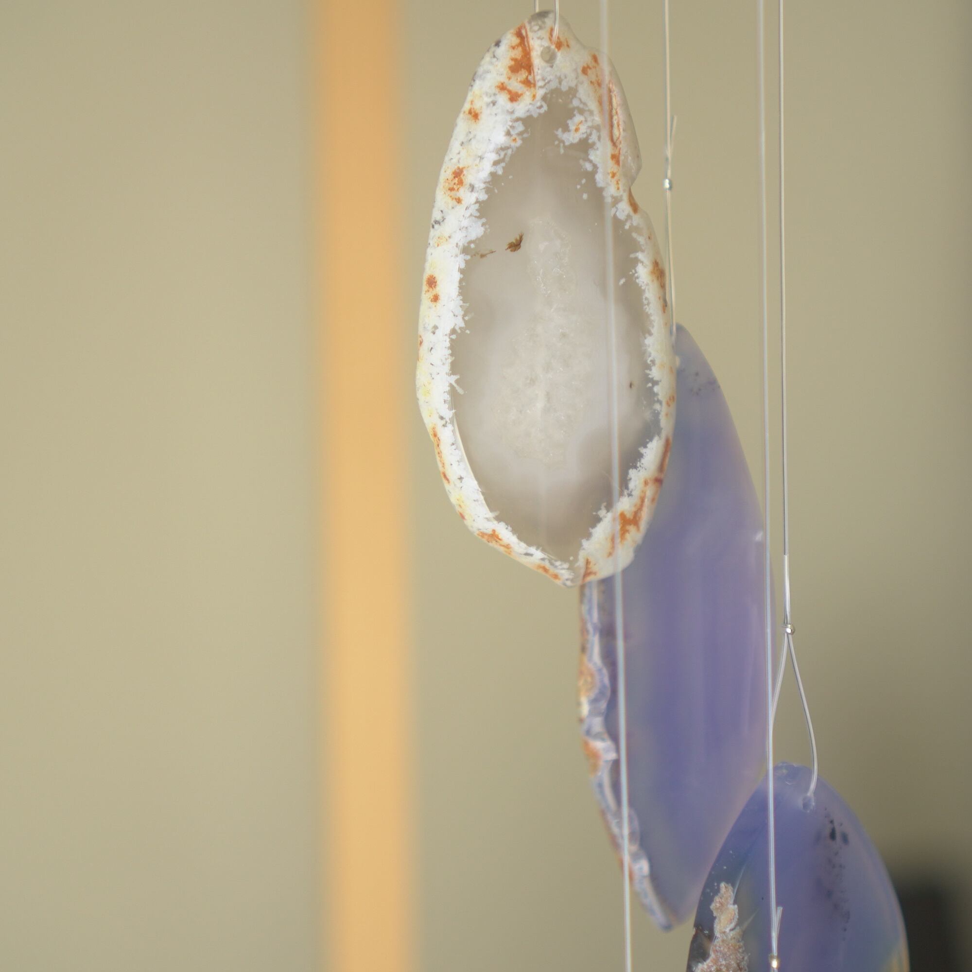 連なるアゲートが風を受けて揺れるとチリンチリン、美しい響きの音が鳴りとても癒されます。