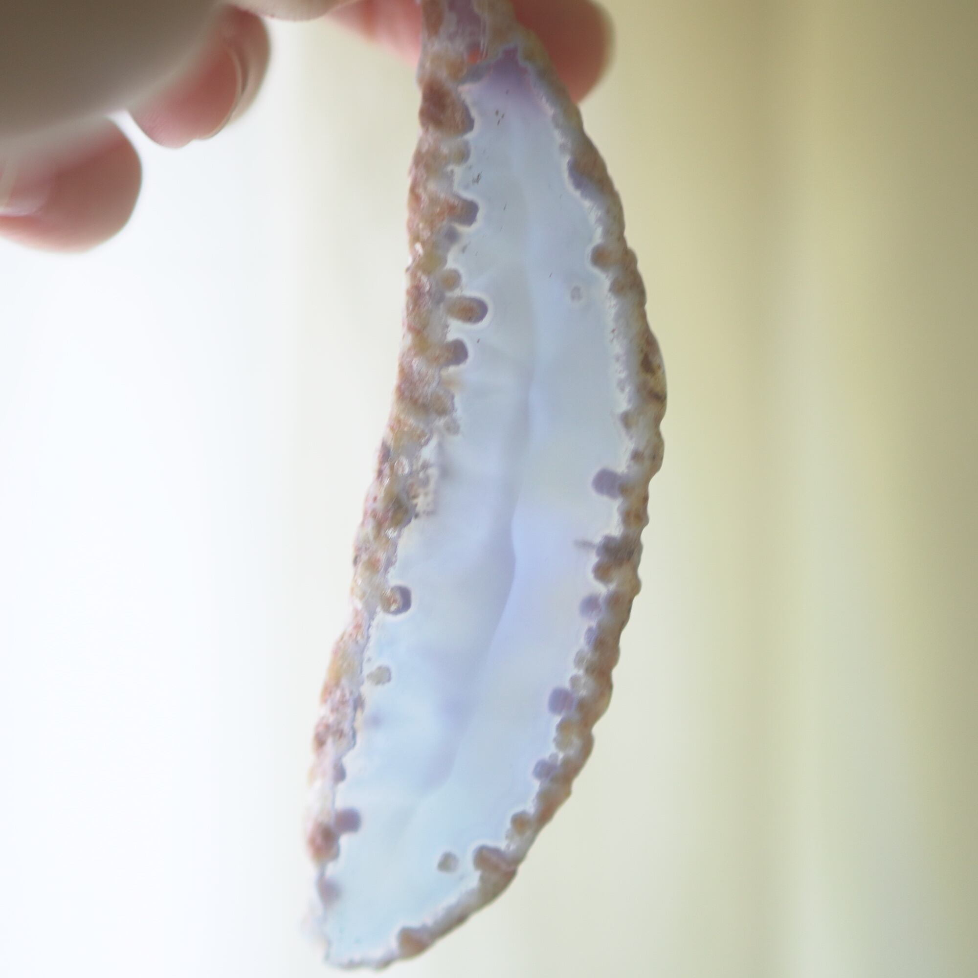 また、透明感が魅力でもあるので、窓際で自然光を通した際と、室内灯の下で光を通さずに見る際、異なる表情を見せてくれますのでその違いも是非お楽しみください。(写真の前半は自然光を透かせたもので、後半の4枚は光を透かさず壁を背景に撮影したものです)