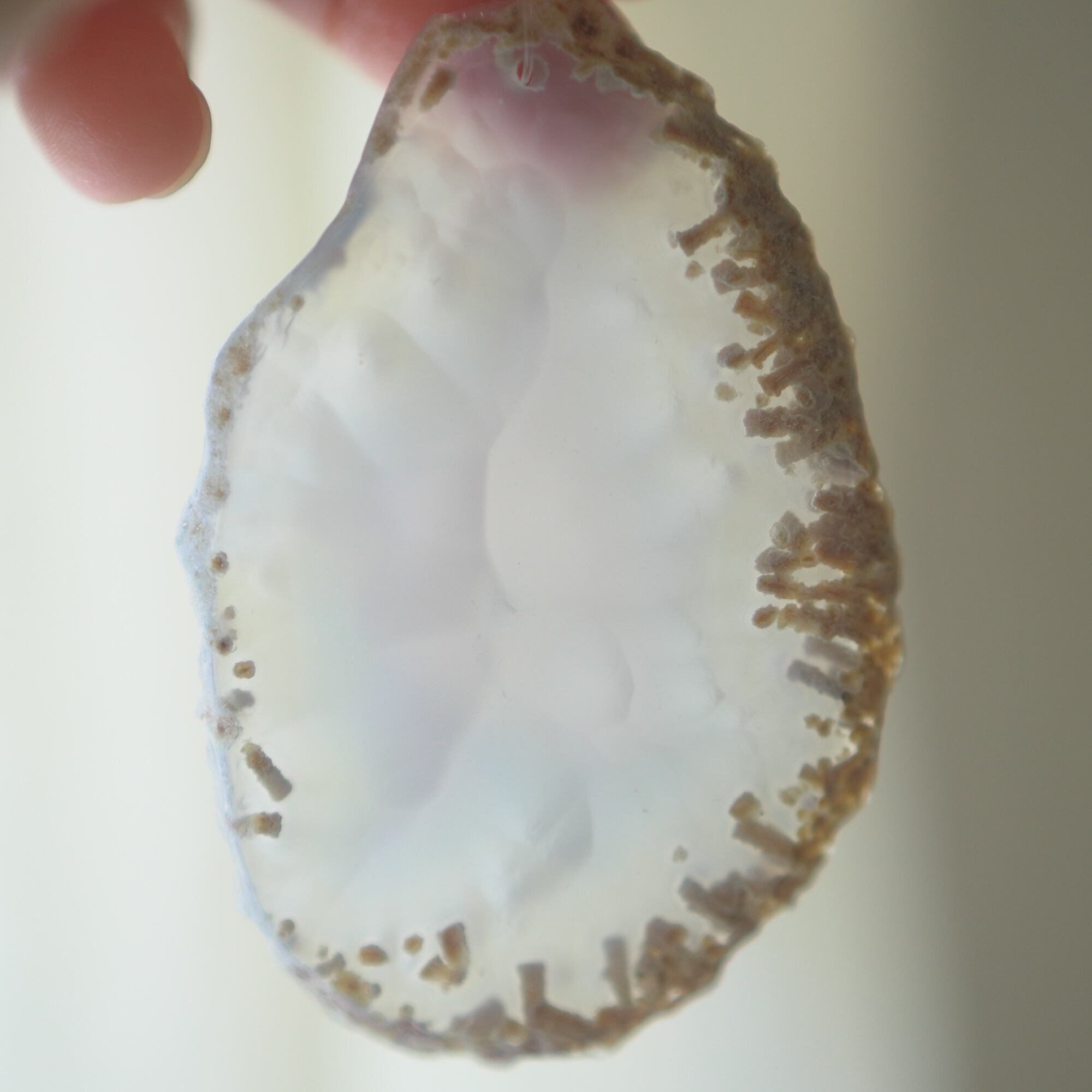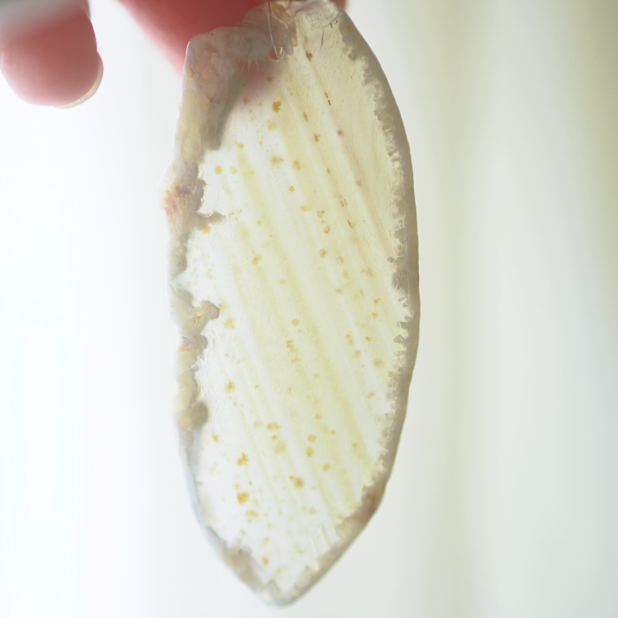 また、透明感が魅力でもあるので、窓際で自然光を通した際と、室内灯の下で光を通さずに見る際、異なる表情を見せてくれますのでその違いも是非お楽しみください。(写真の前半は自然光を透かせたもので、後半の4枚は光を透かさず壁を背景に撮影したものです)