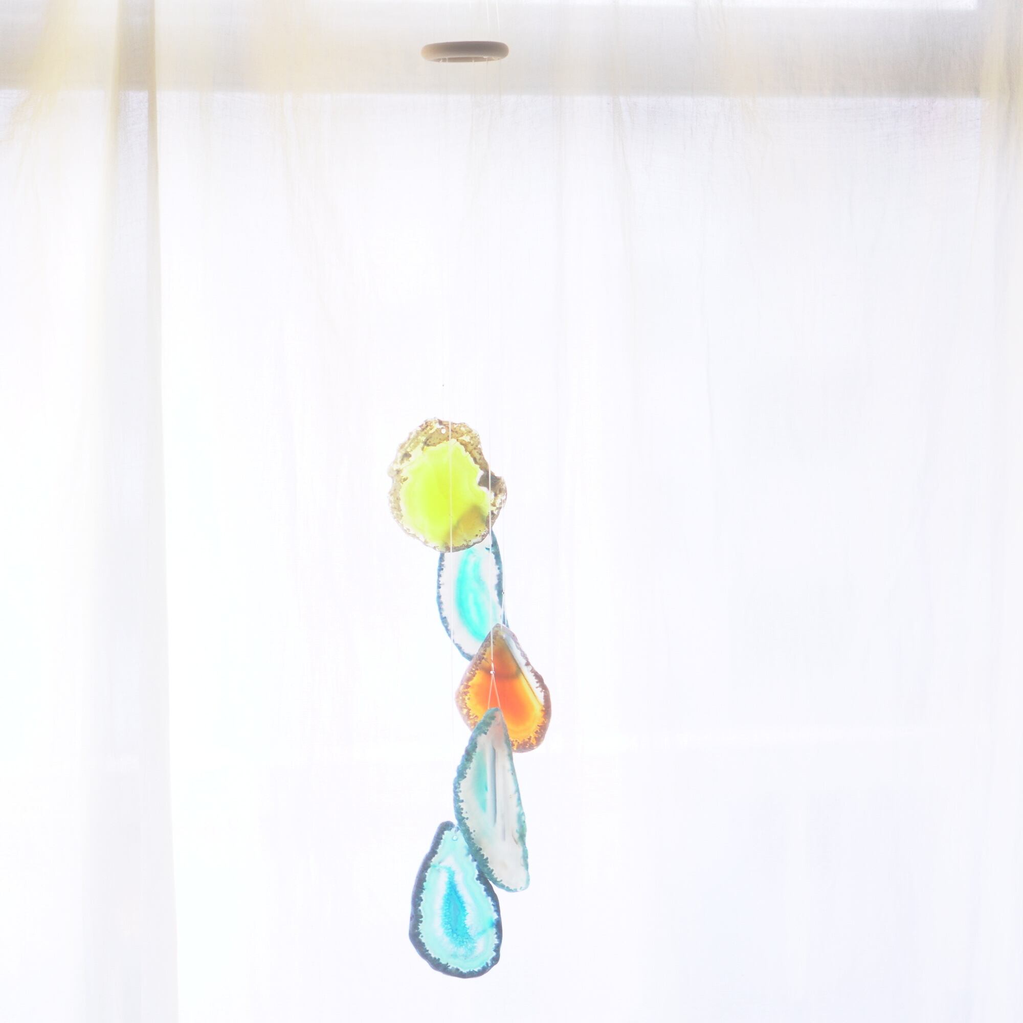 連なるアゲートが風を受けて揺れるとチリンチリン、美しい響きの音が鳴りとても癒されます。