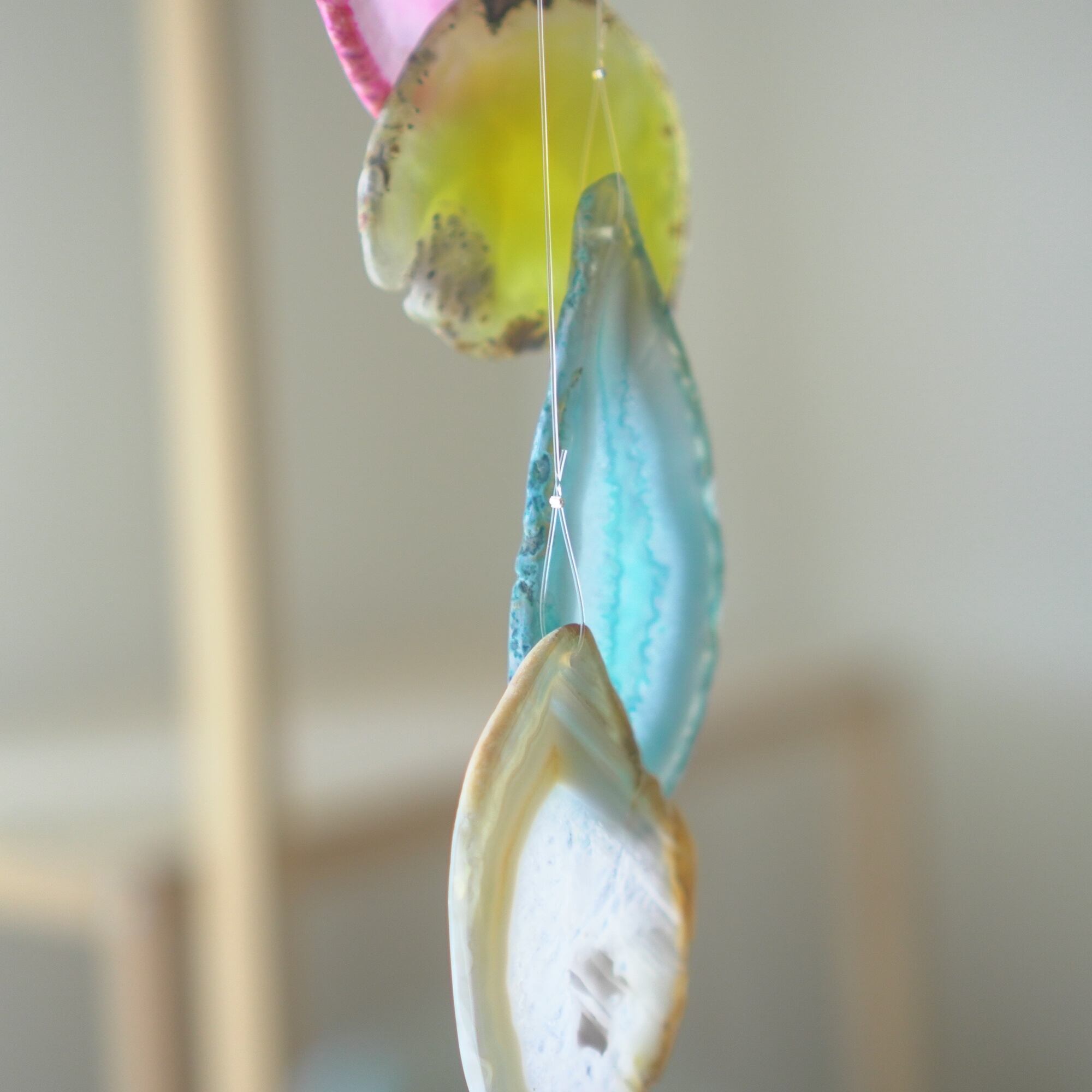 連なるアゲートが風を受けて揺れるとチリンチリン、美しい響きの音が鳴りとても癒されます。