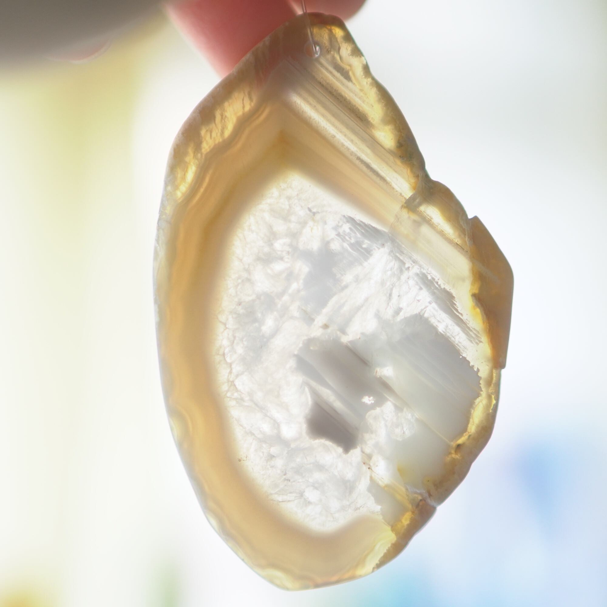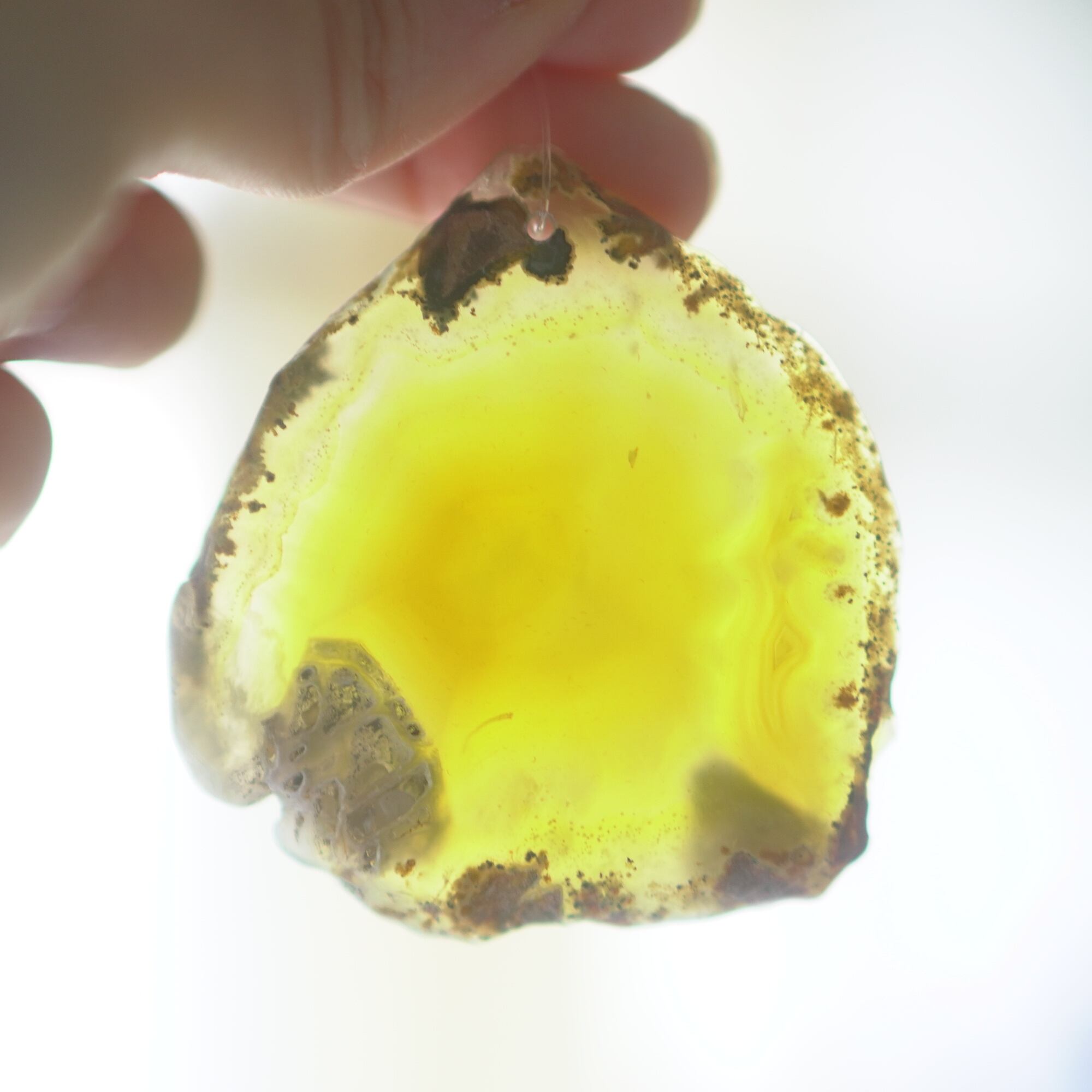 ✧✧✧染色の石なので耐光性(光による経年でのカラー変化の耐性)に優れているわけではなく一日の中で長時間強い日光に当たるような場所に飾られるのはおすすめしないのですが、陽光に透かした時にだけ真価を発揮する美しさがありますので、是非たまに翳したりして光と一緒にお楽しみいただけたらと思っております。特に濃い鮮やかな色など、気になられる場合は、日光のあまり当たらない場所に飾っていただけたらと思います✧✧✧