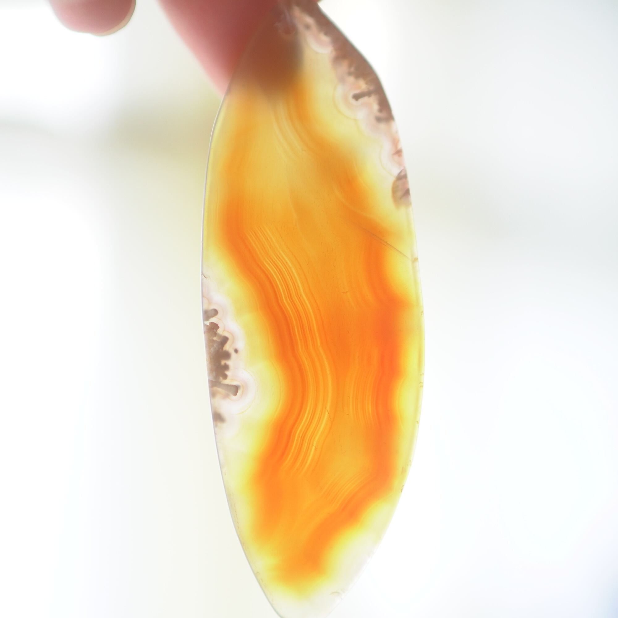 また、透明感が魅力でもあるので、窓際で自然光を通した際と、室内灯の下で光を通さずに見る際、異なる表情を見せてくれますのでその違いも是非お楽しみください。(写真の前半は自然光を透かせたもので、後半の4枚は光を透かさず壁を背景に撮影したものです)