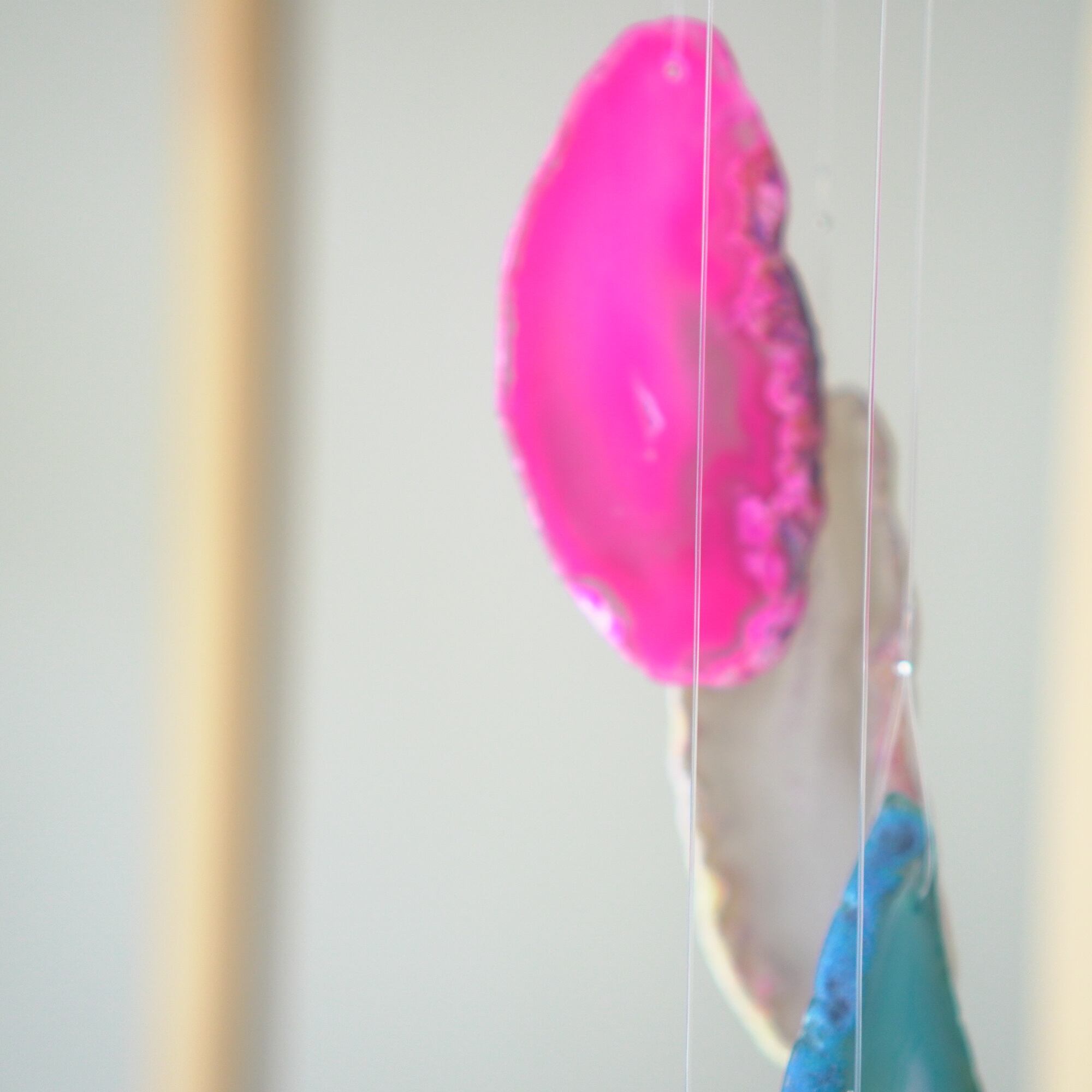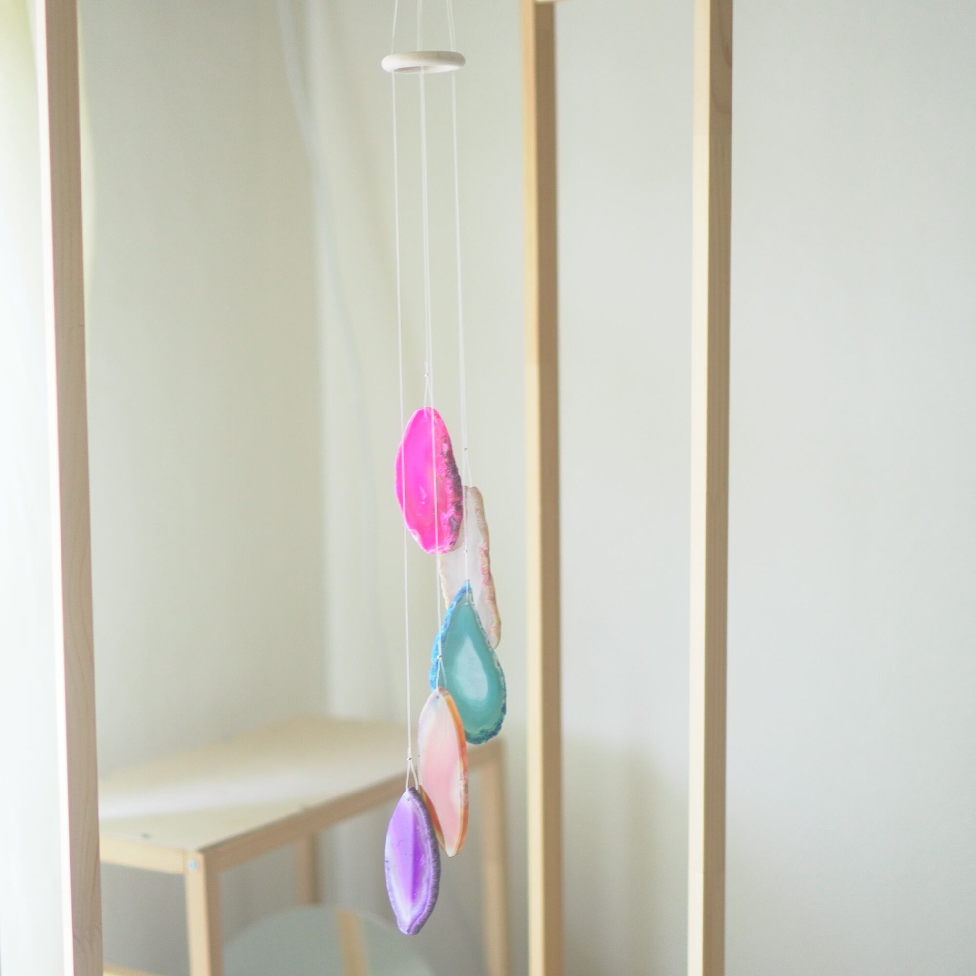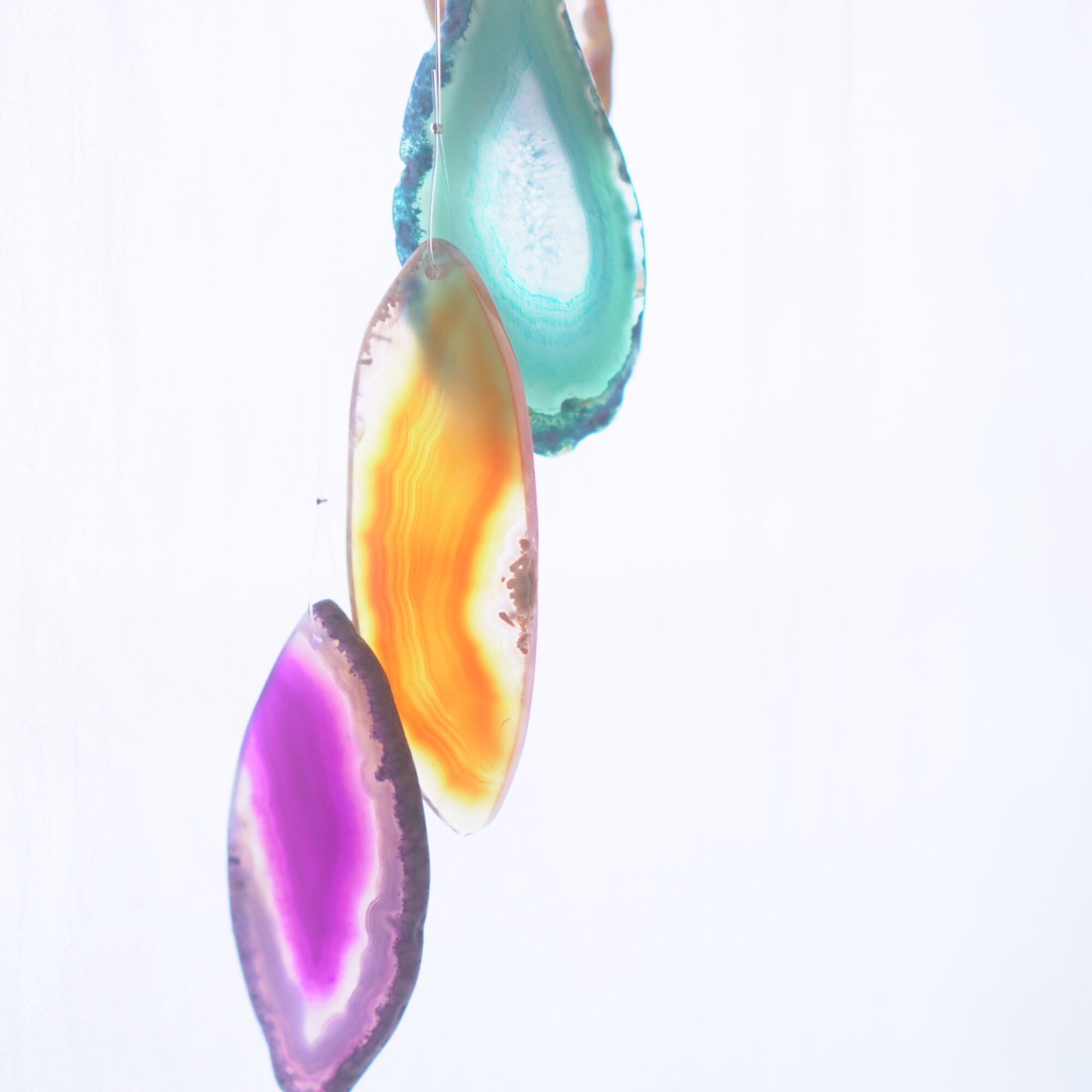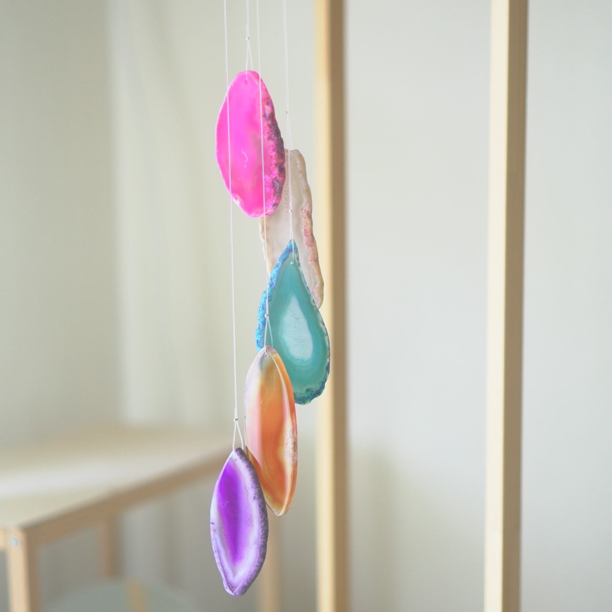 連なるアゲートが風を受けて揺れるとチリンチリン、美しい響きの音が鳴りとても癒されます。