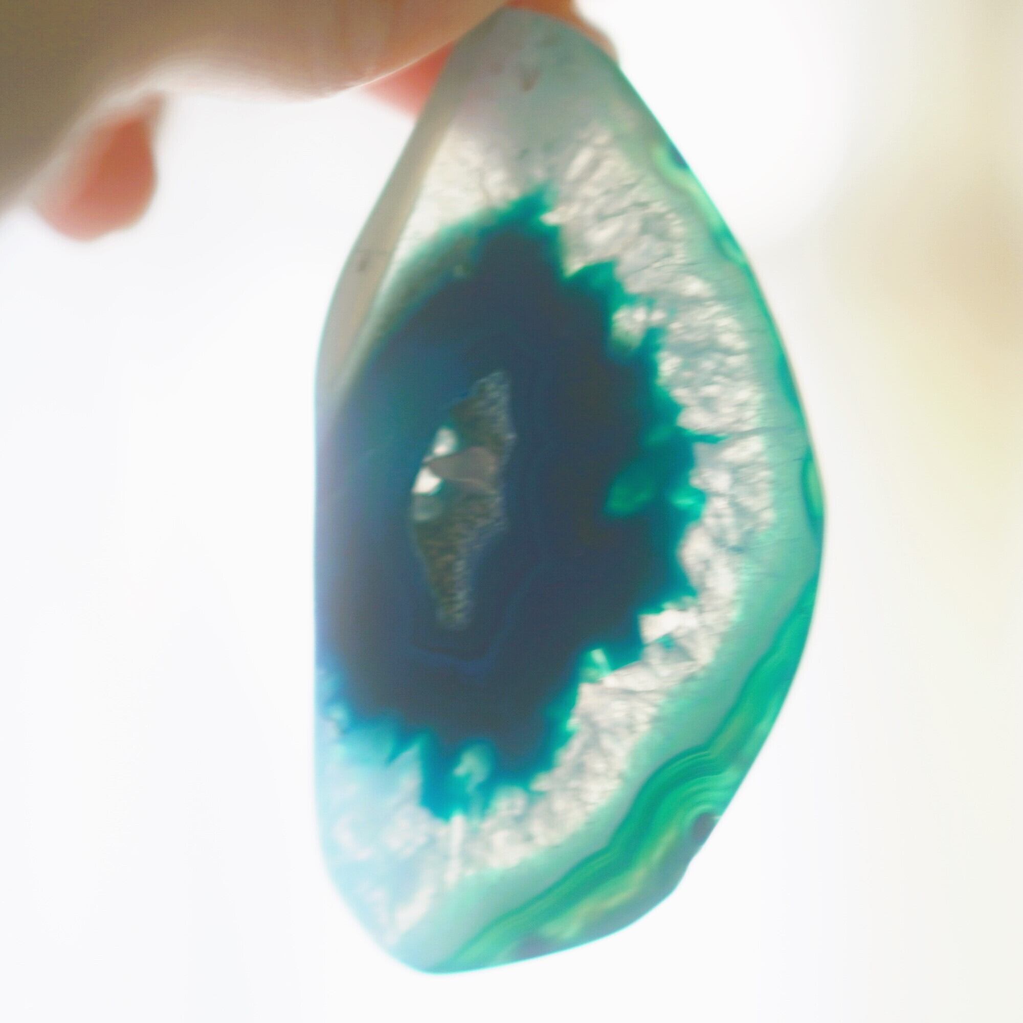 ✧✧✧染色の石なので耐光性(光による経年でのカラー変化の耐性)に優れているわけではなく一日の中で長時間強い日光に当たるような場所に飾られるのはおすすめしないのですが、陽光に透かした時にだけ真価を発揮する美しさがありますので、是非たまに翳したりして光と一緒にお楽しみいただけたらと思っております。特に濃い鮮やかな色など、気になられる場合は、日光のあまり当たらない場所に飾っていただけたらと思います✧✧✧