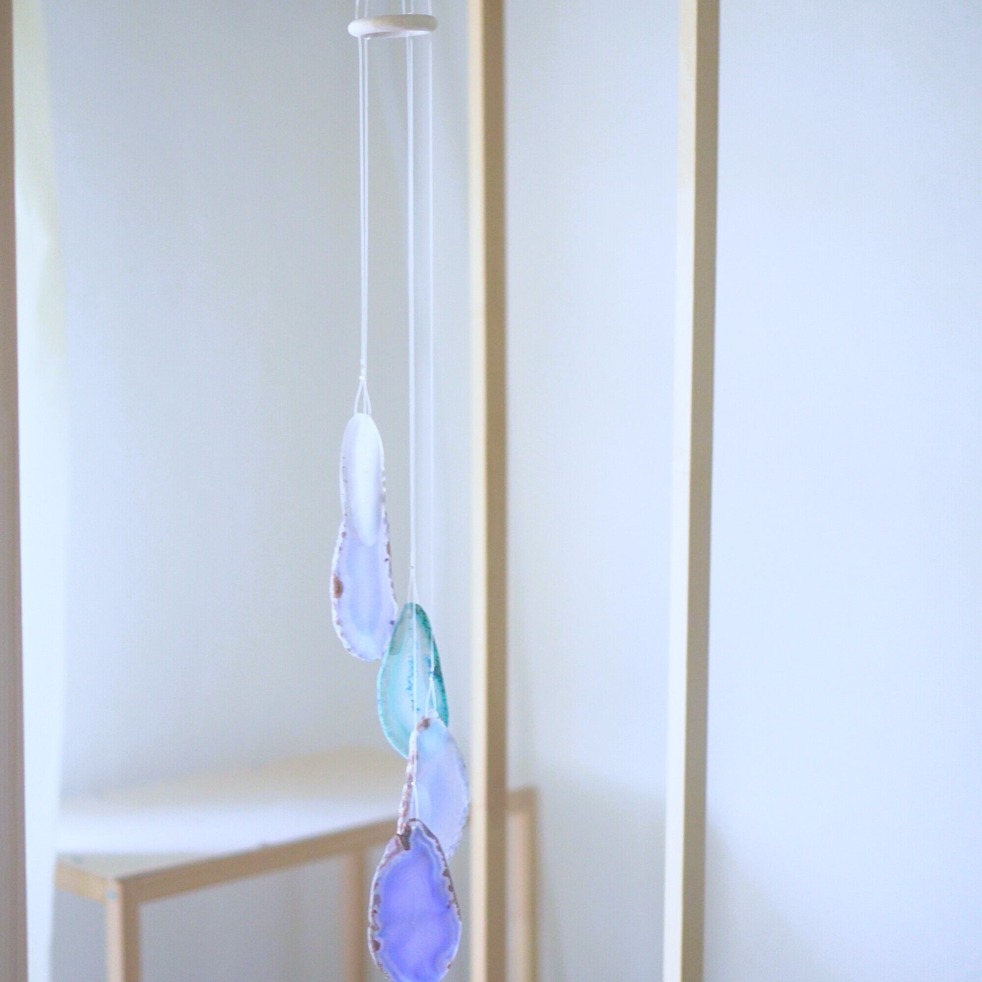 連なるアゲートが風を受けて揺れるとチリンチリン、美しい響きの音が鳴りとても癒されます。