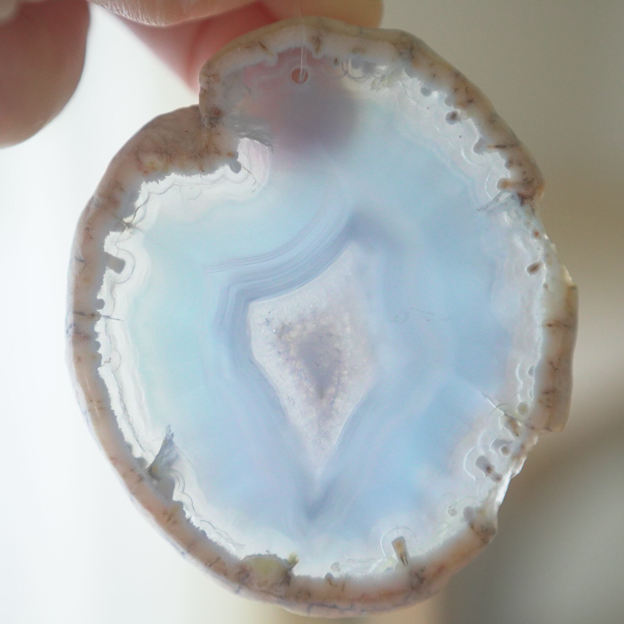Agate Slice , Natural Wood , Nylon Cord , Metal