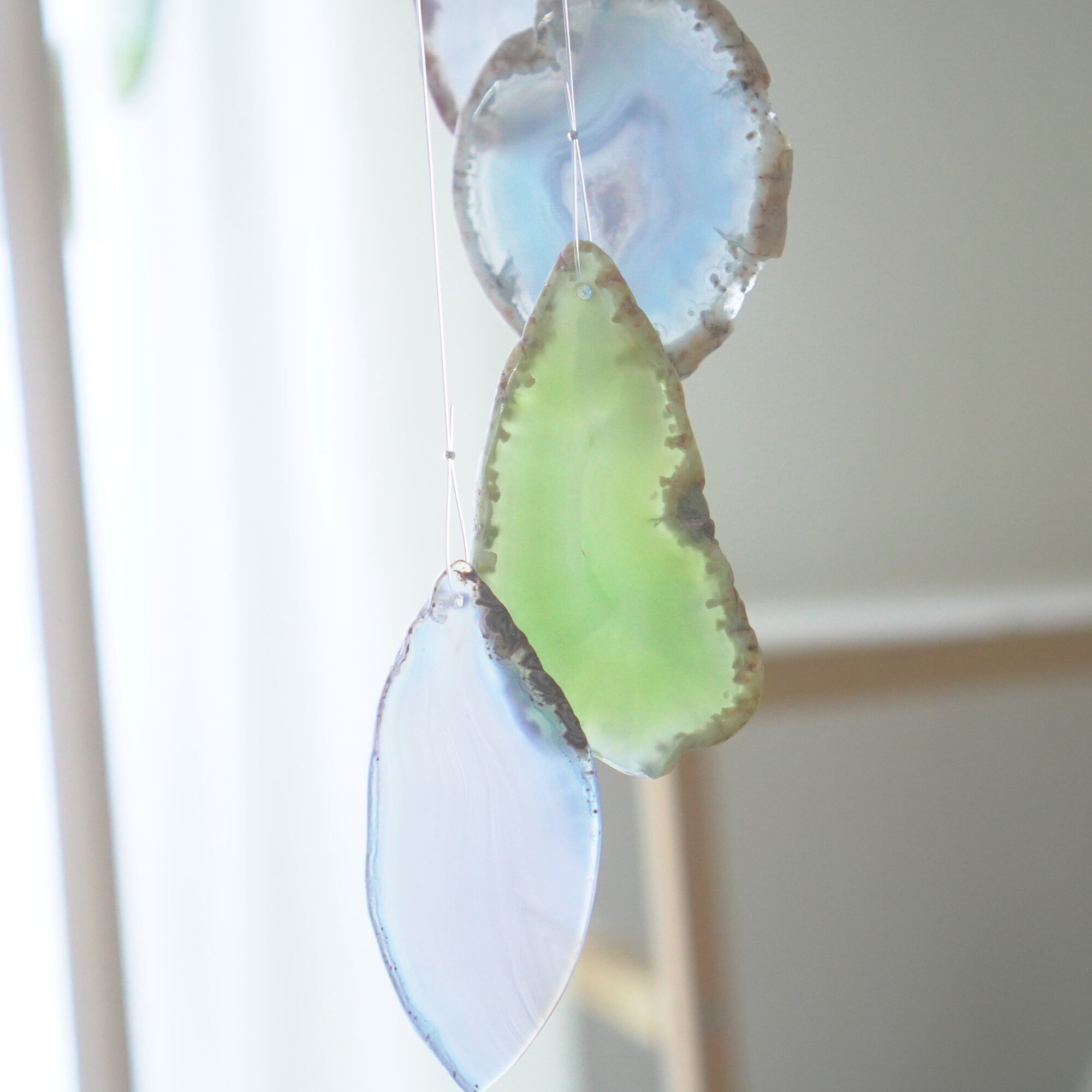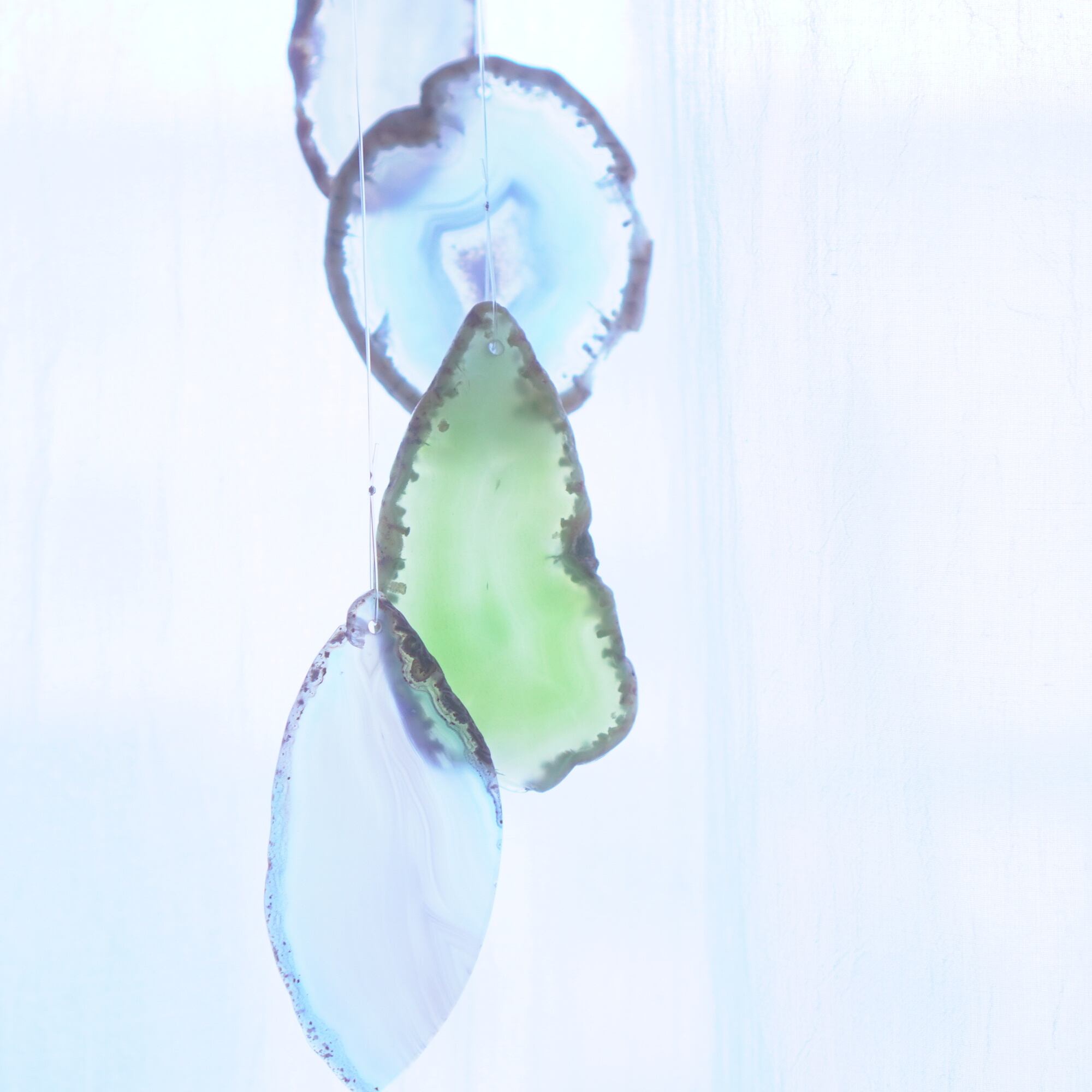 連なるアゲートが風を受けて揺れるとチリンチリン、美しい響きの音が鳴りとても癒されます。