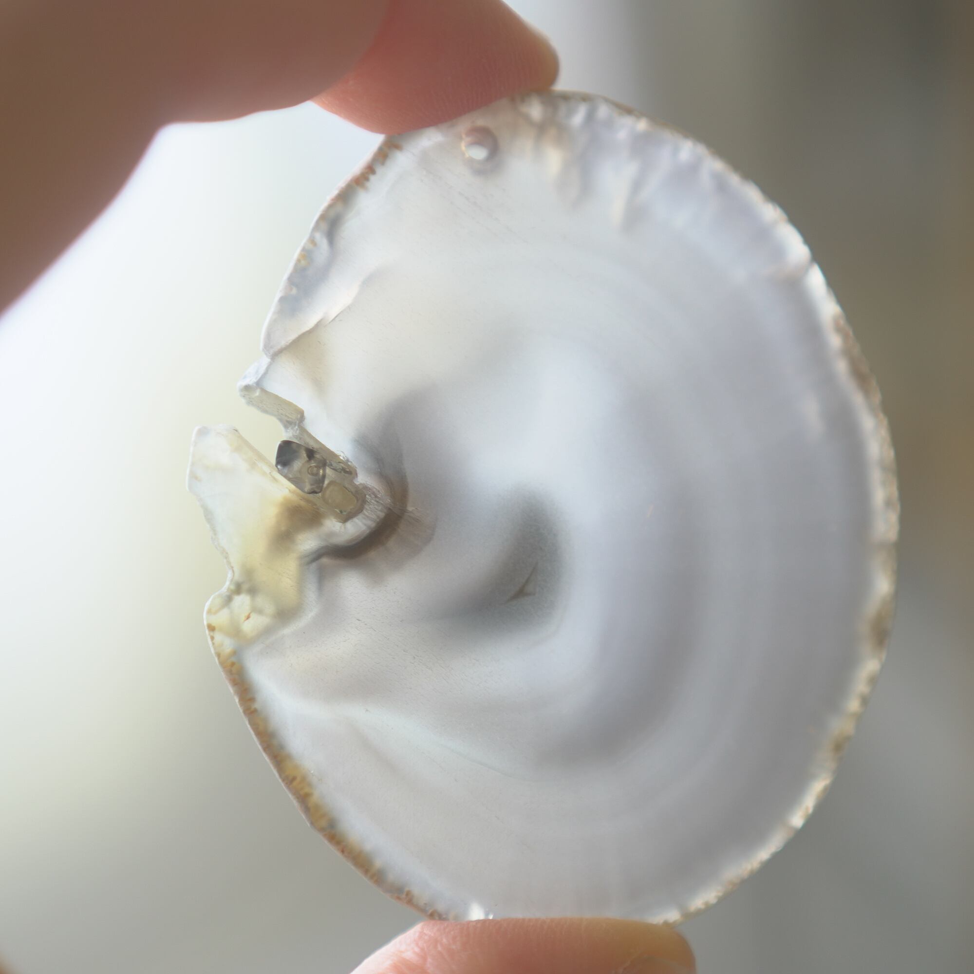 Agate Slice , Natural Wood , Nylon Cord , Metal