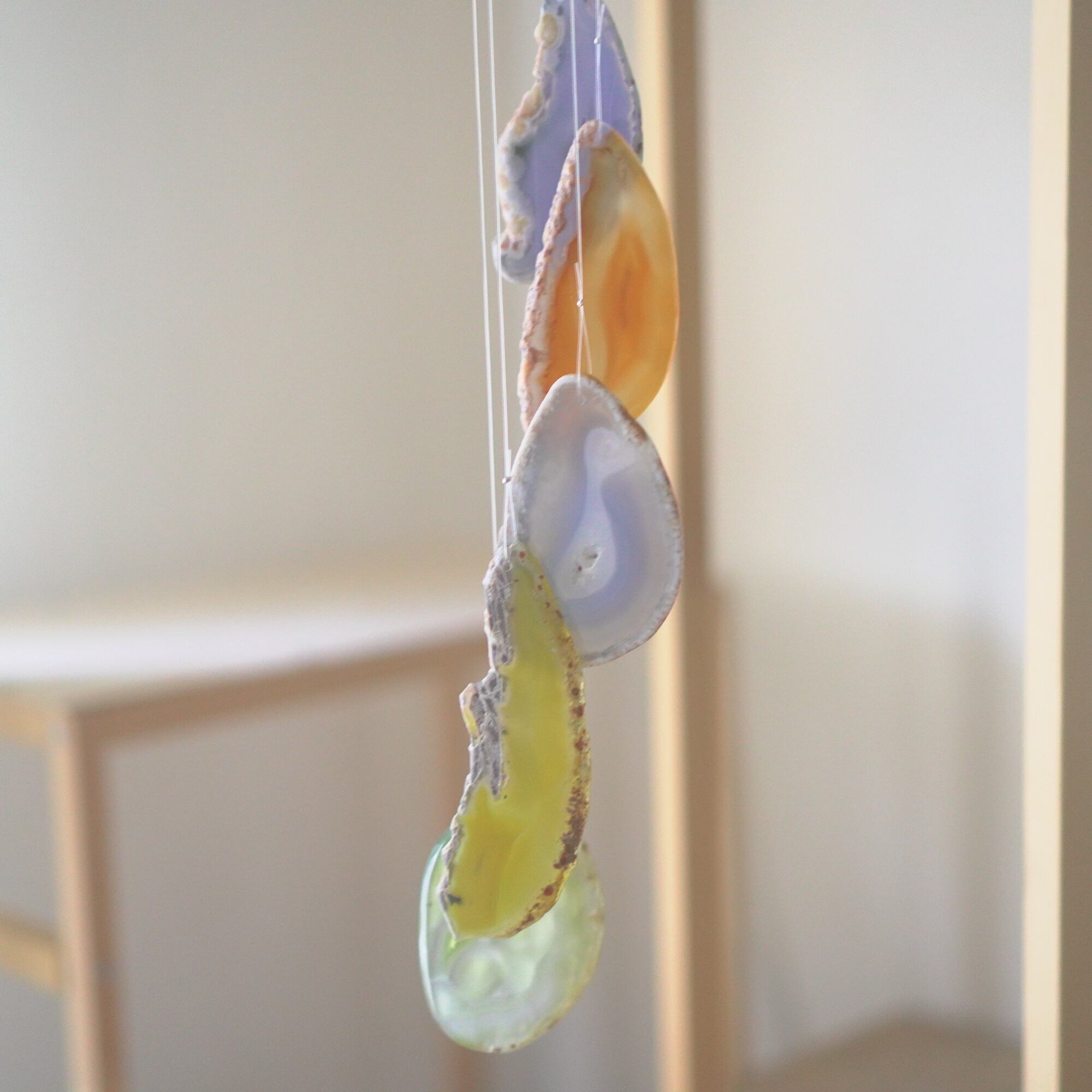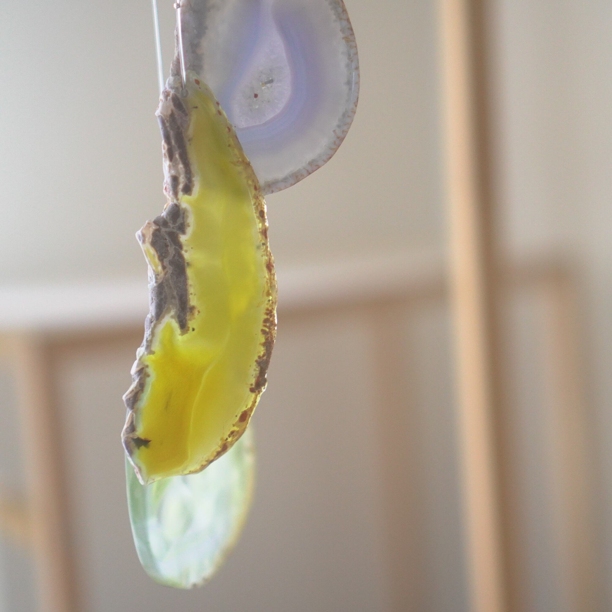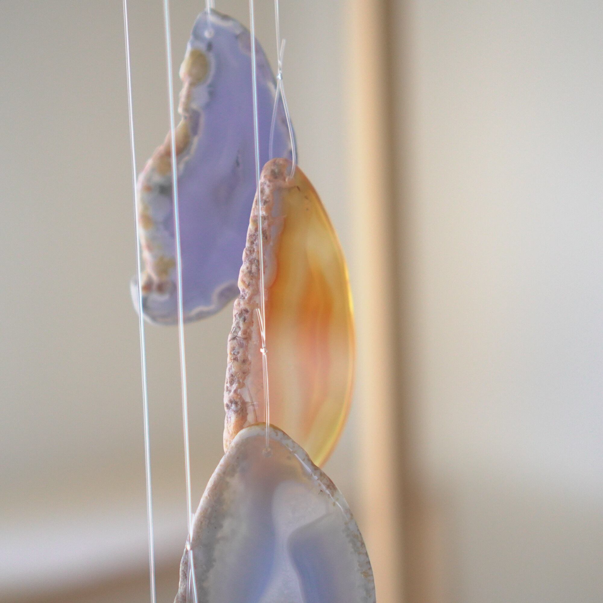 連なるアゲートが風を受けて揺れるとチリンチリン、美しい響きの音が鳴りとても癒されます。