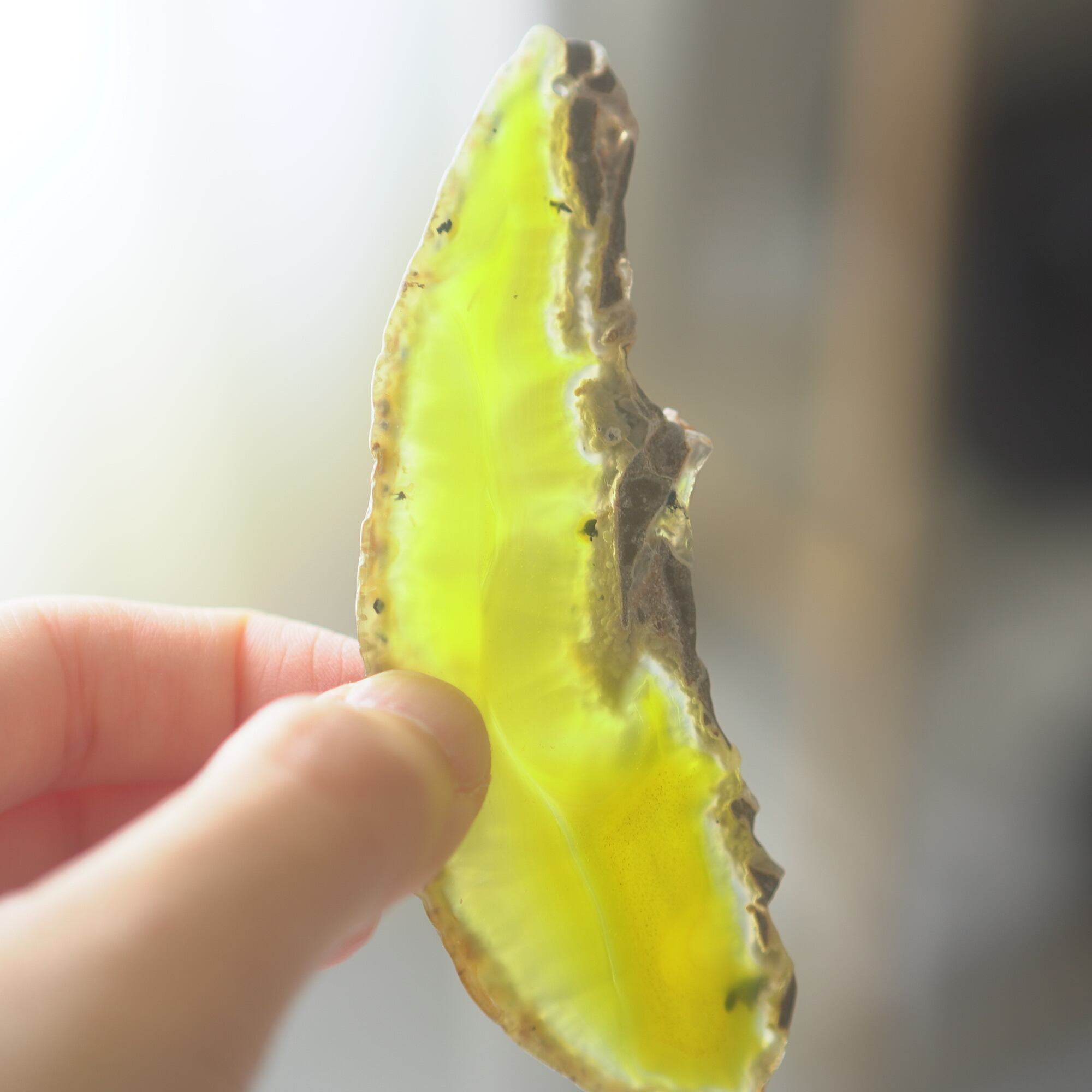 ✧✧✧染色の石なので耐光性(光による経年でのカラー変化の耐性)に優れているわけではなく一日の中で長時間強い日光に当たるような場所に飾られるのはおすすめしないのですが、陽光に透かした時にだけ真価を発揮する美しさがありますので、是非たまに翳したりして光と一緒にお楽しみいただけたらと思っております。特に濃い鮮やかな色など、気になられる場合は、日光のあまり当たらない場所に飾っていただけたらと思います✧✧✧