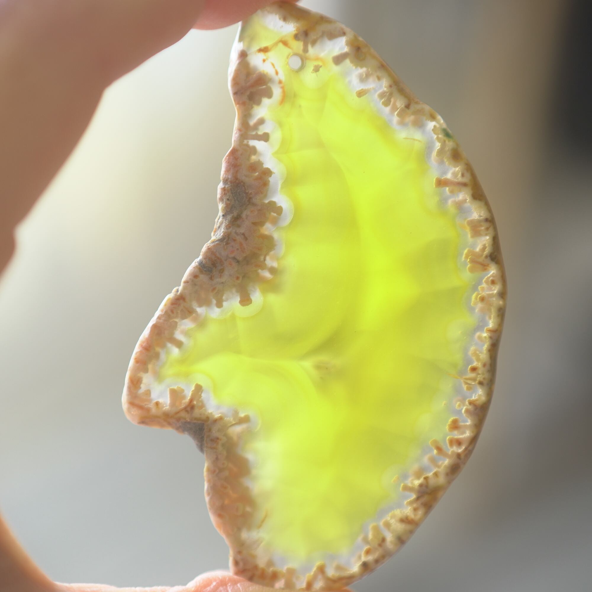 ✧✧✧染色の石なので耐光性(光による経年でのカラー変化の耐性)に優れているわけではなく一日の中で長時間強い日光に当たるような場所に飾られるのはおすすめしないのですが、陽光に透かした時にだけ真価を発揮する美しさがありますので、是非たまに翳したりして光と一緒にお楽しみいただけたらと思っております。特に濃い鮮やかな色など、気になられる場合は、日光のあまり当たらない場所に飾っていただけたらと思います✧✧✧