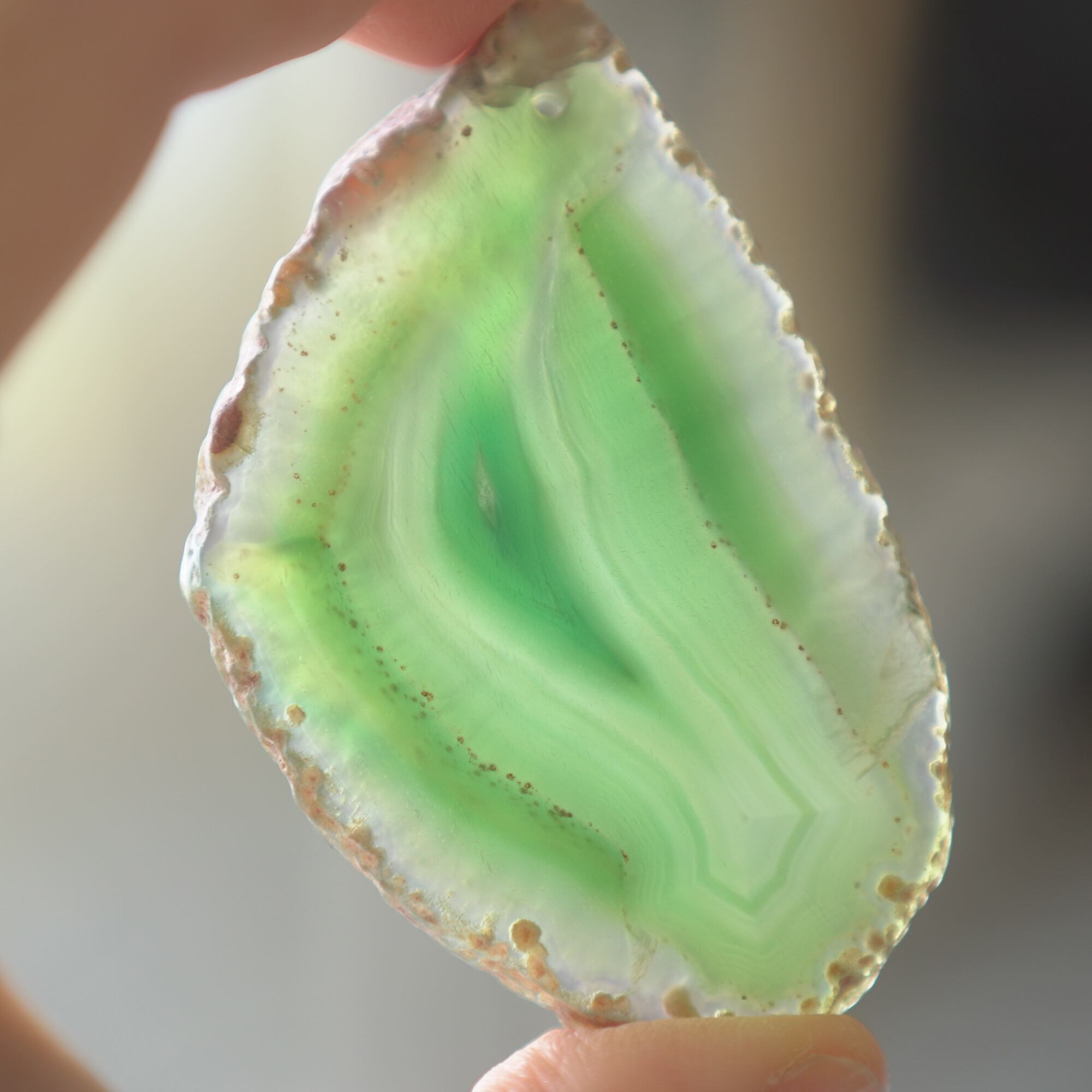 ✧✧✧染色の石なので耐光性(光による経年でのカラー変化の耐性)に優れているわけではなく一日の中で長時間強い日光に当たるような場所に飾られるのはおすすめしないのですが、陽光に透かした時にだけ真価を発揮する美しさがありますので、是非たまに翳したりして光と一緒にお楽しみいただけたらと思っております。特に濃い鮮やかな色など、気になられる場合は、日光のあまり当たらない場所に飾っていただけたらと思います✧✧✧