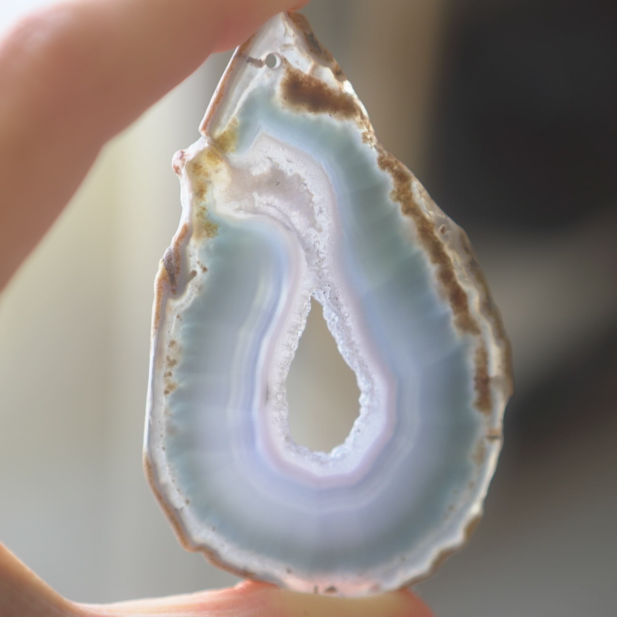 Agate Slice , Natural Wood , Nylon Cord , Metal