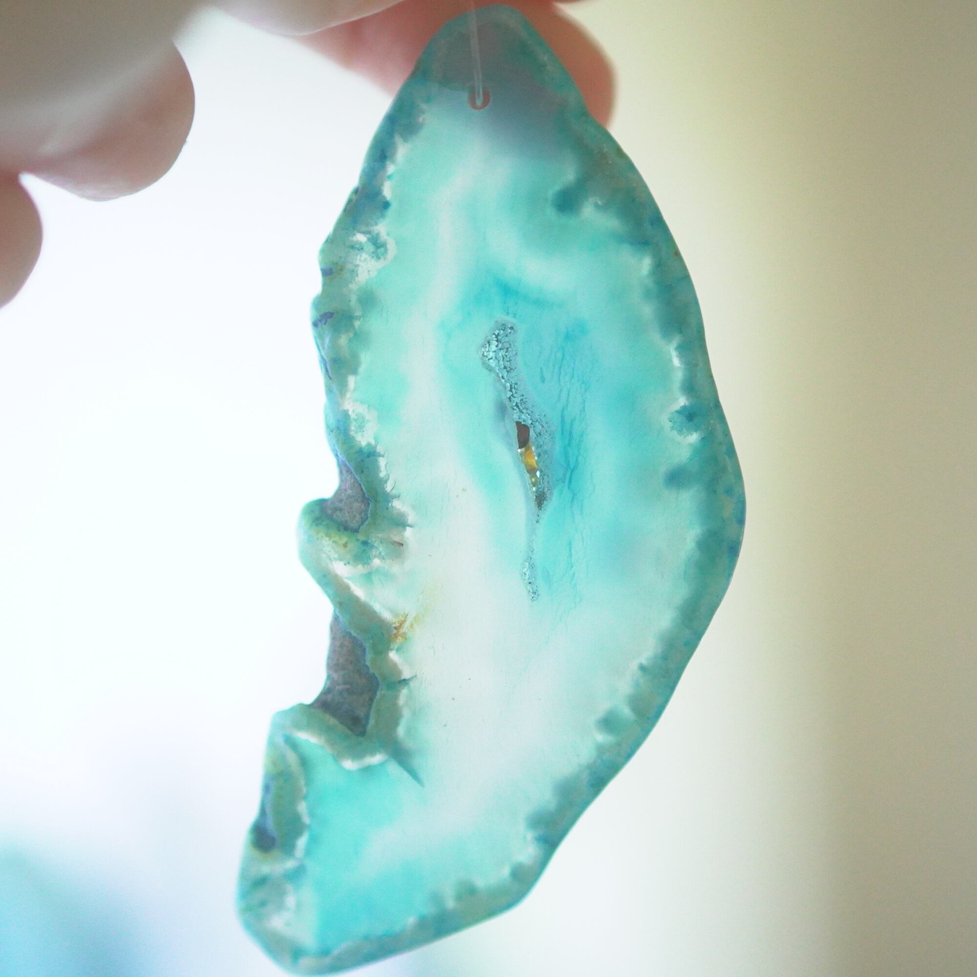 ✧✧✧染色の石なので耐光性(光による経年でのカラー変化の耐性)に優れているわけではなく一日の中で長時間強い日光に当たるような場所に飾られるのはおすすめしないのですが、陽光に透かした時にだけ真価を発揮する美しさがありますので、是非たまに翳したりして光と一緒にお楽しみいただけたらと思っております。特に濃い鮮やかな色など、気になられる場合は、日光のあまり当たらない場所に飾っていただけたらと思います✧✧✧