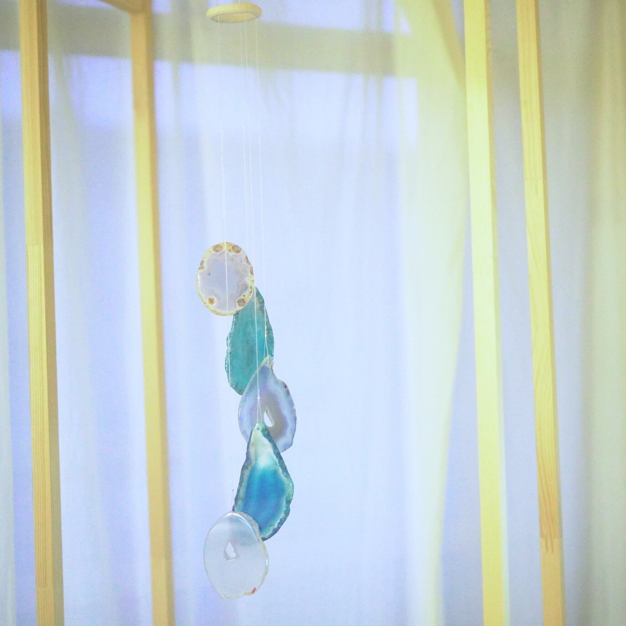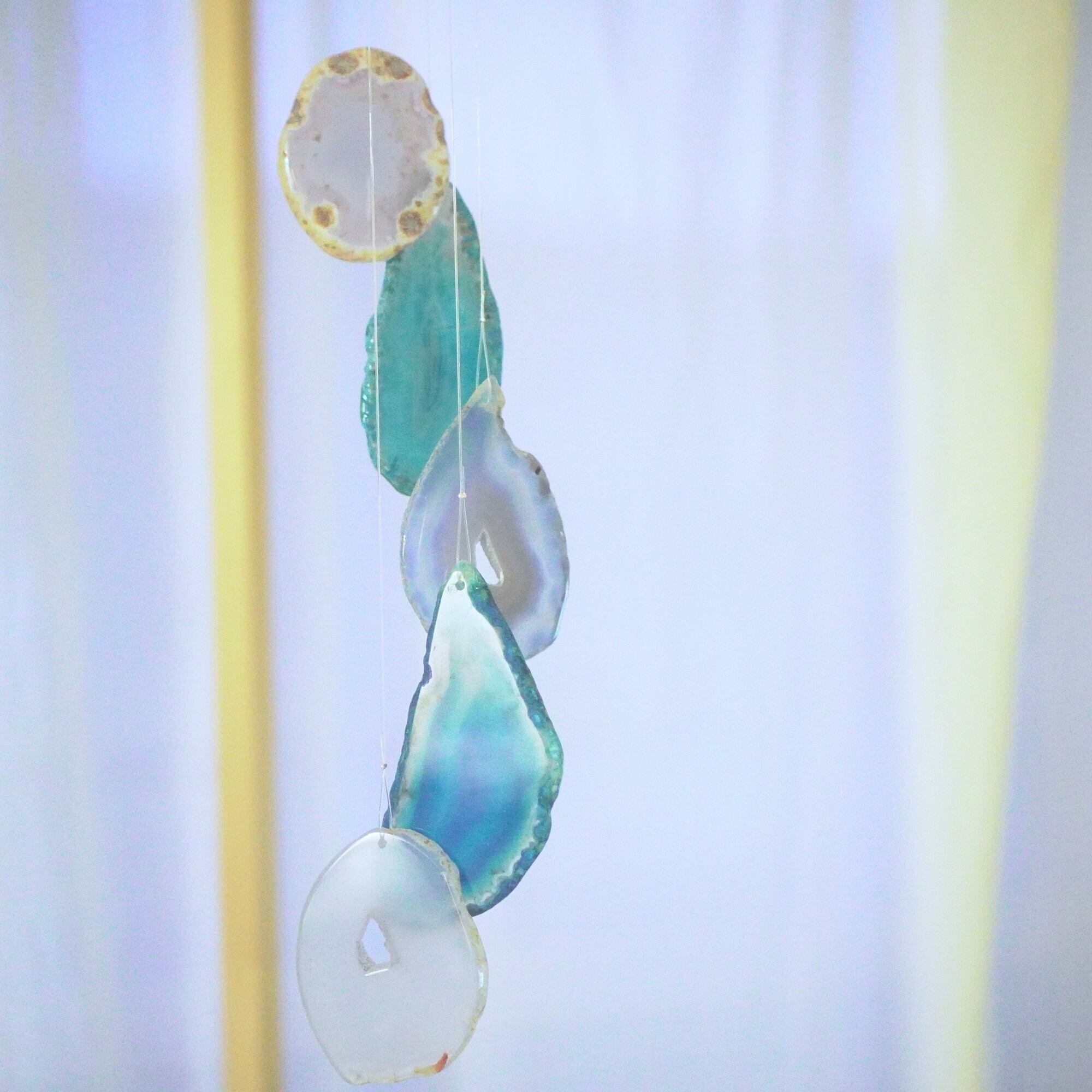 連なるアゲートが風を受けて揺れるとチリンチリン、美しい響きの音が鳴りとても癒されます。