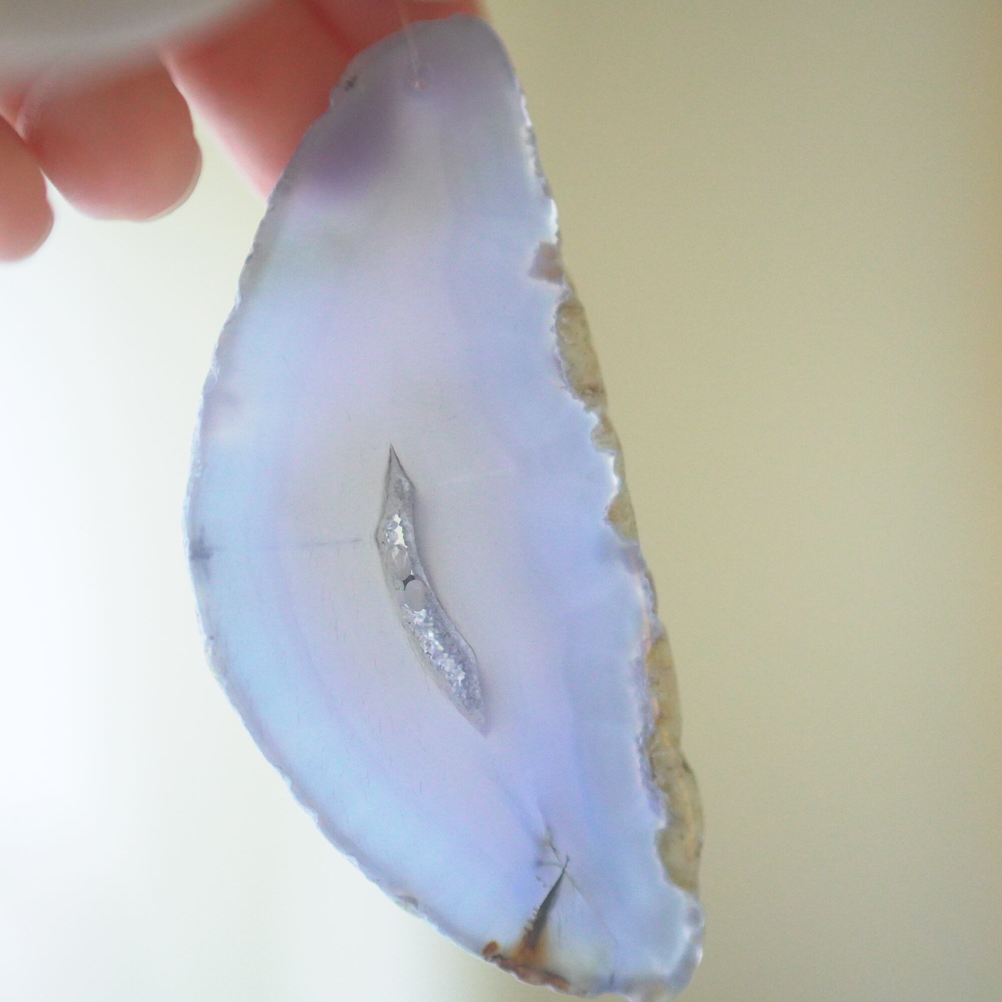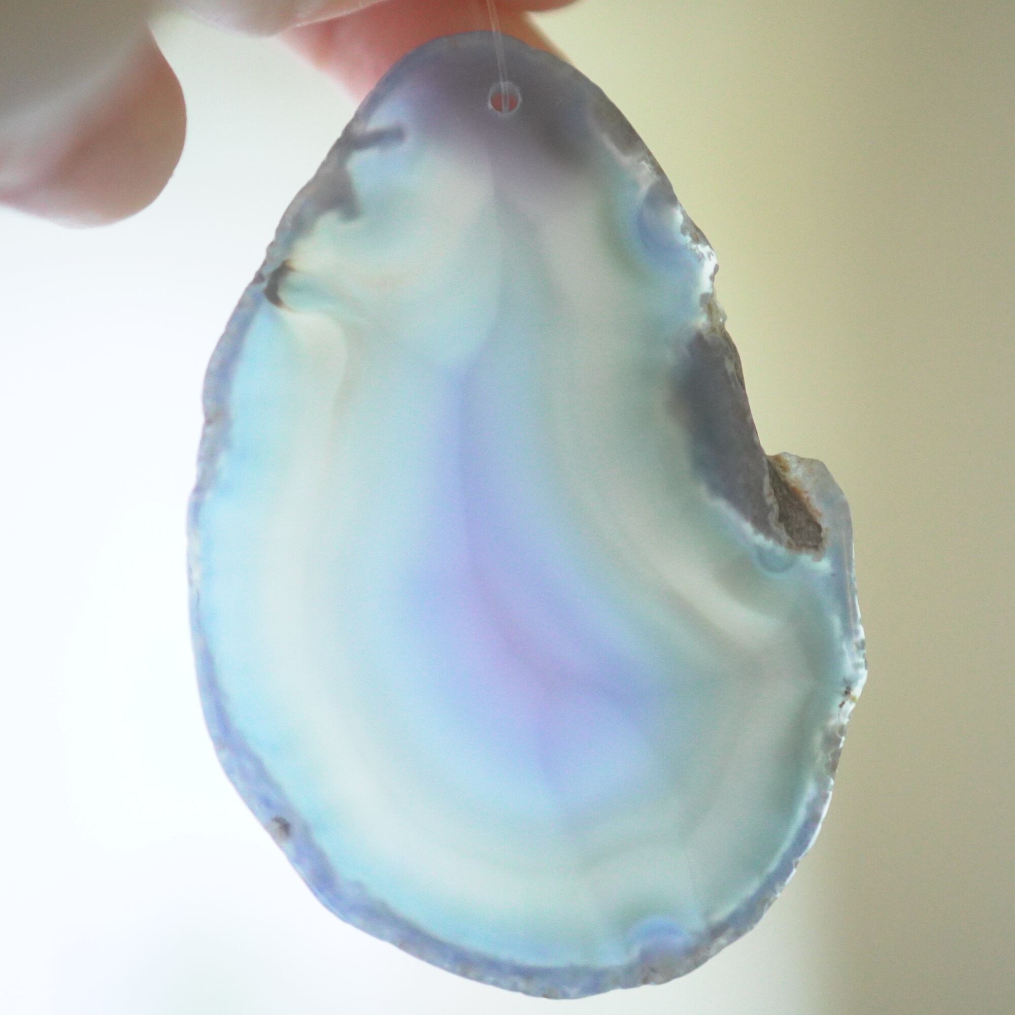 ✧✧✧瑪瑙の濃い色は染色によるもので、水に濡れたり布で擦ると多少色落ちします。飾るものなので大丈夫かと思いますが白いお洋服などには触れないようにされてください。汚れが気になる時は若干の色落ち前提で水を軽く含ませた布やティッシュでやさしく拭いていただくことは大丈夫です。また、画像のような細かなヒビ・カケはスライスメノウの加工上かなり多くあるので、チャイムとしての機能や全体の外観を著しく損なうものを除き、見た目の完璧さ<音色の響き重視で選んで使用しております、よろしくお願い致します✧✧✧