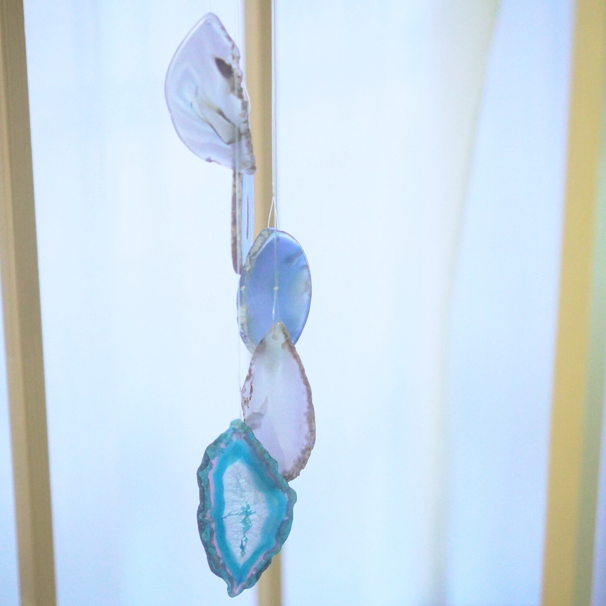 連なるアゲートが風を受けて揺れるとチリンチリン、美しい響きの音が鳴りとても癒されます。