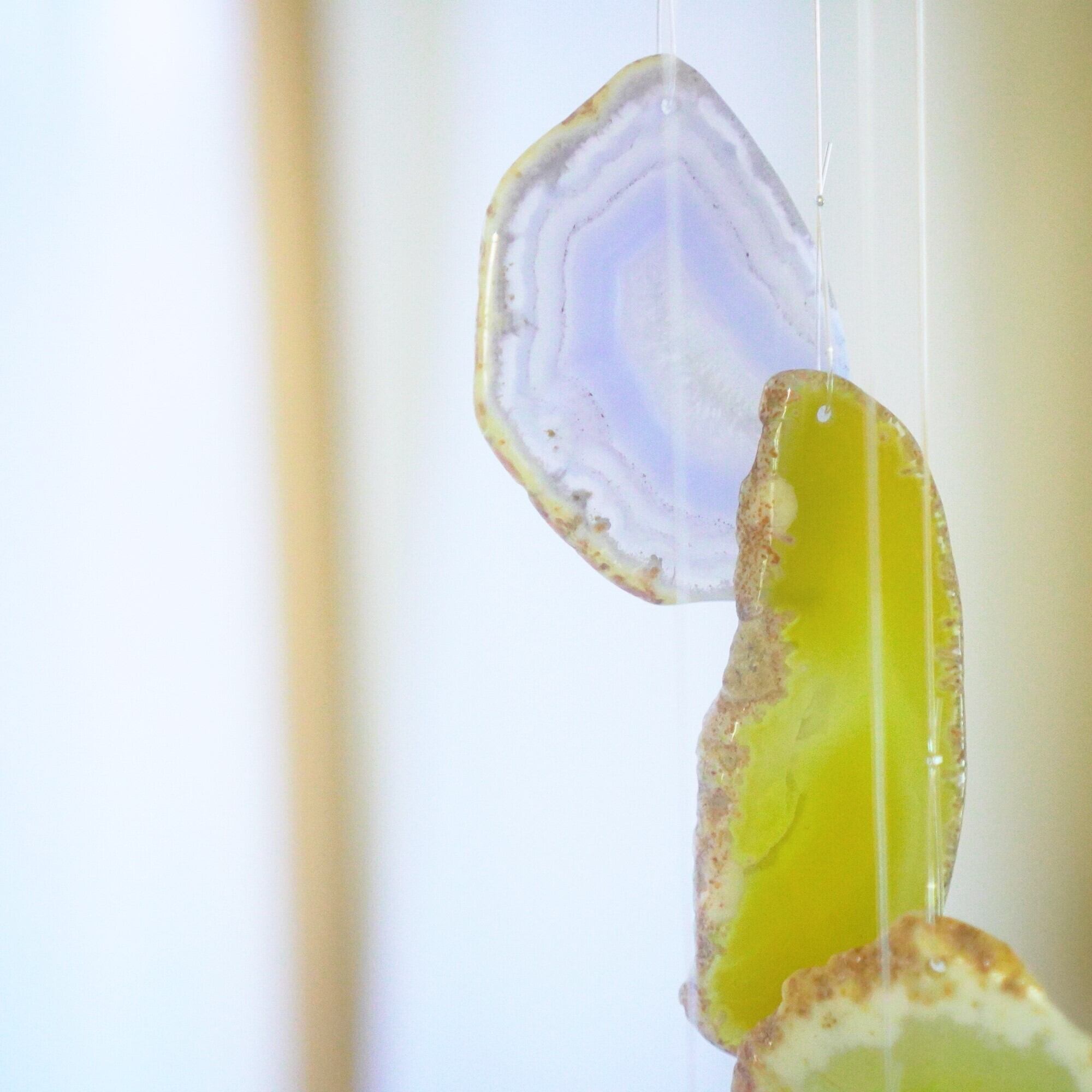 連なるアゲートが風を受けて揺れるとチリンチリン、美しい響きの音が鳴りとても癒されます。