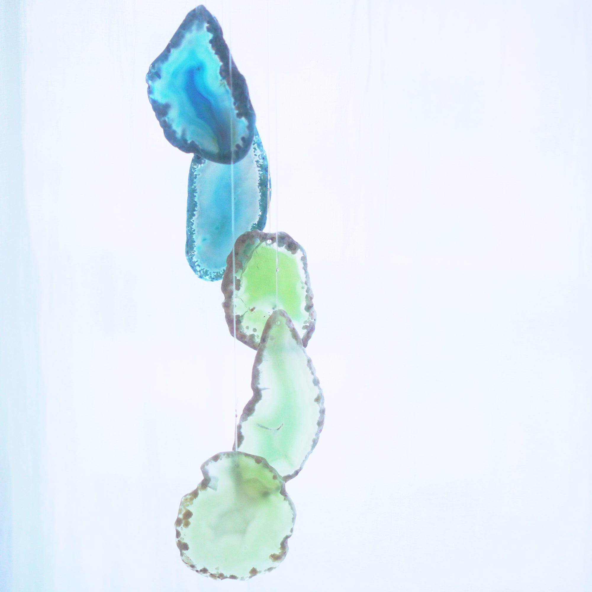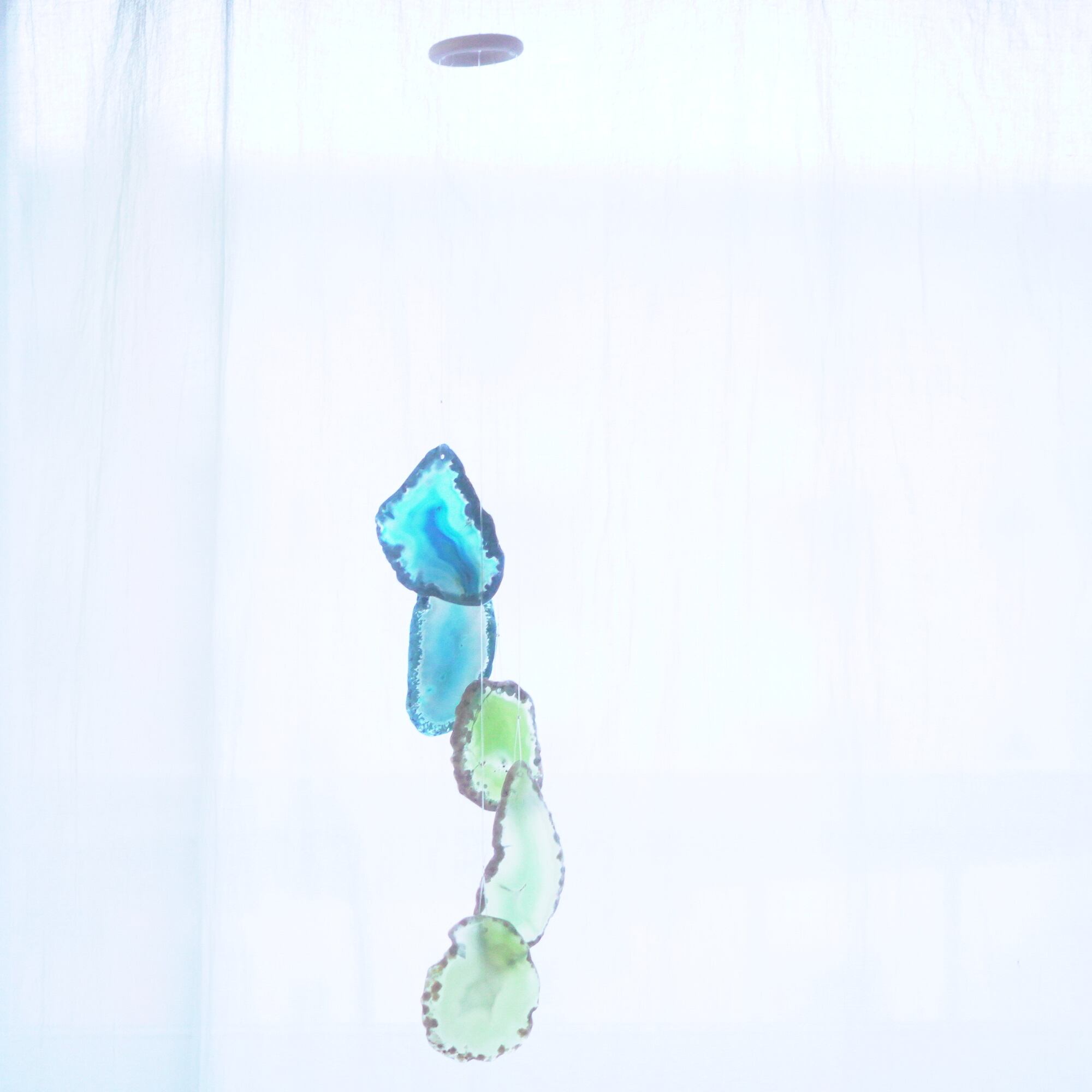 連なるアゲートが風を受けて揺れるとチリンチリン、美しい響きの音が鳴りとても癒されます。
