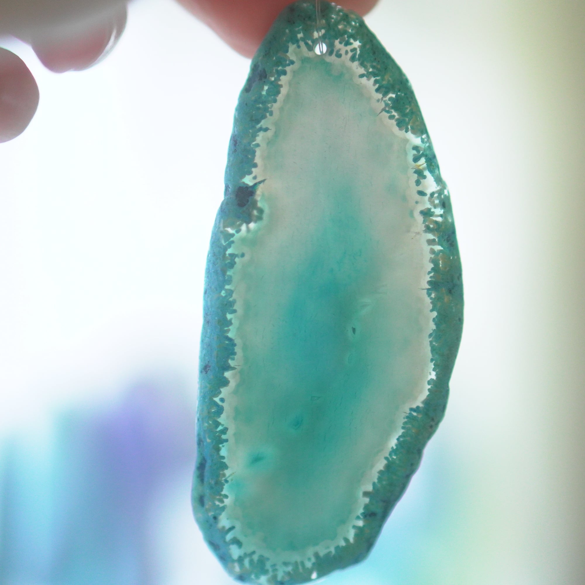 ✧✧✧染色の石なので耐光性(光による経年でのカラー変化の耐性)に優れているわけではなく一日の中で長時間強い日光に当たるような場所に飾られるのはおすすめしないのですが、陽光に透かした時にだけ真価を発揮する美しさがありますので、是非たまに翳したりして光と一緒にお楽しみいただけたらと思っております。特に濃い鮮やかな色など、気になられる場合は、日光のあまり当たらない場所に飾っていただけたらと思います✧✧✧