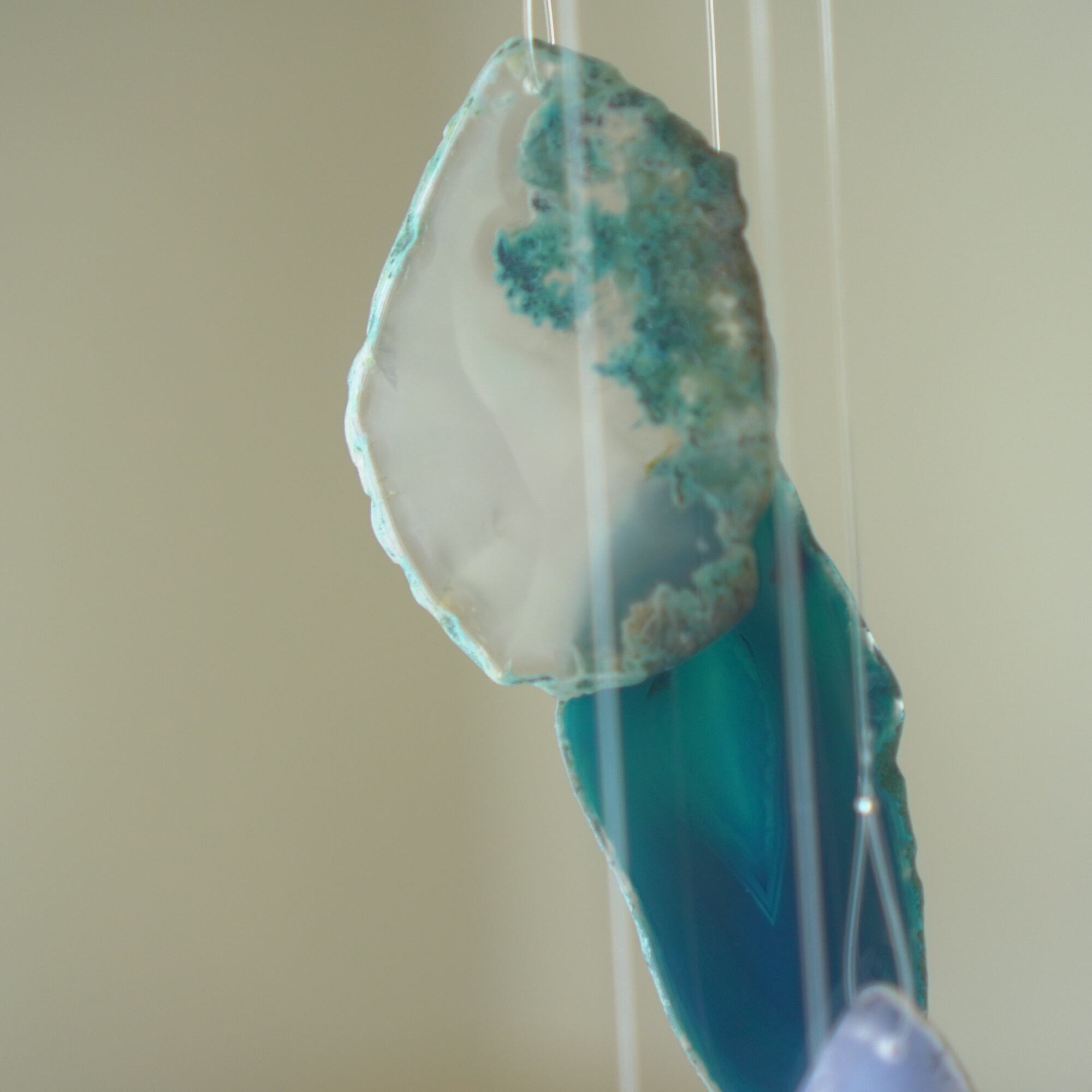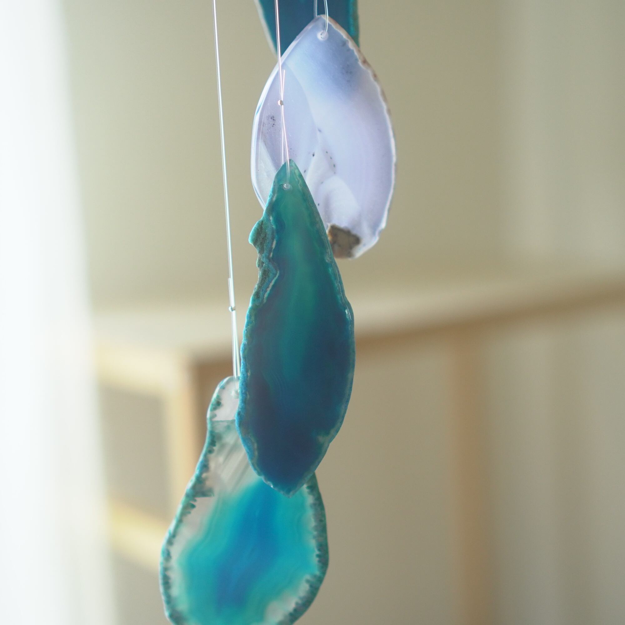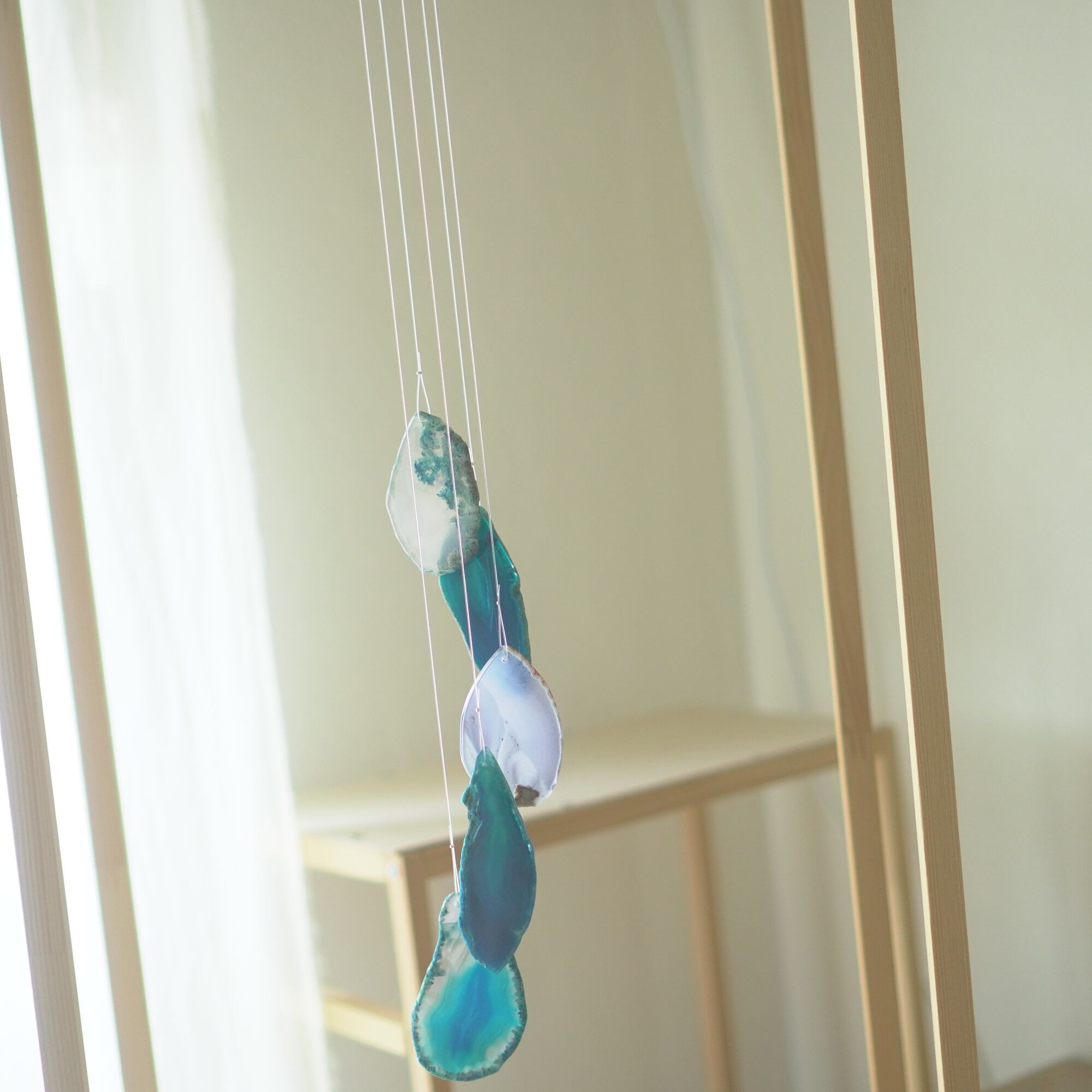 連なるアゲートが風を受けて揺れるとチリンチリン、美しい響きの音が鳴りとても癒されます。